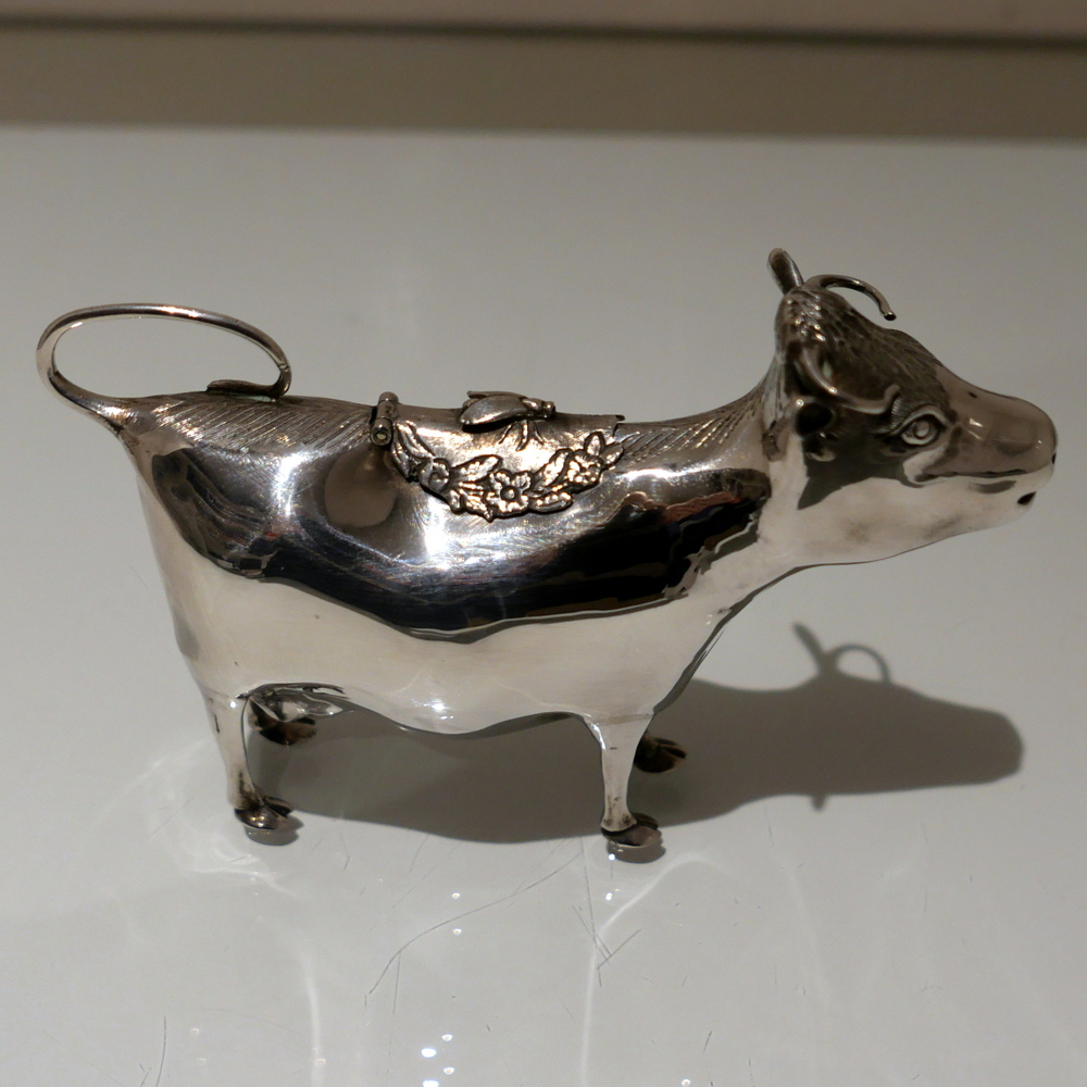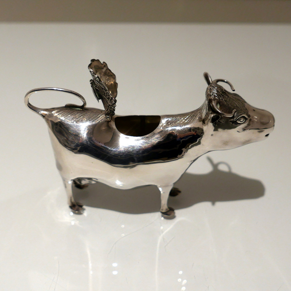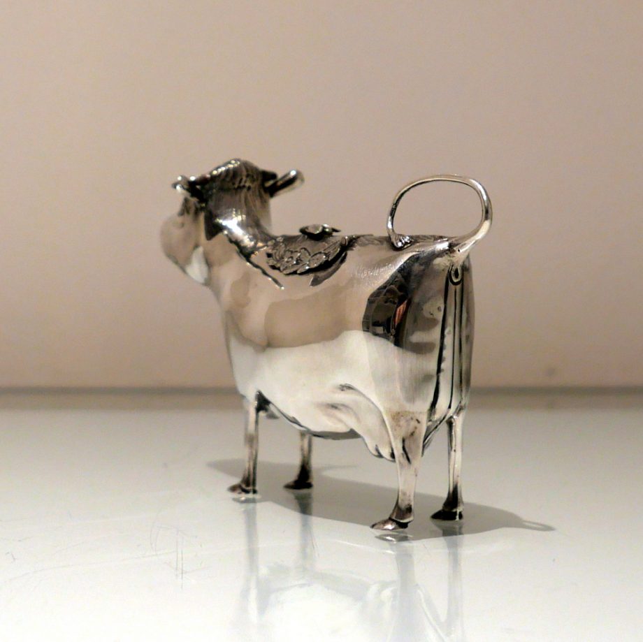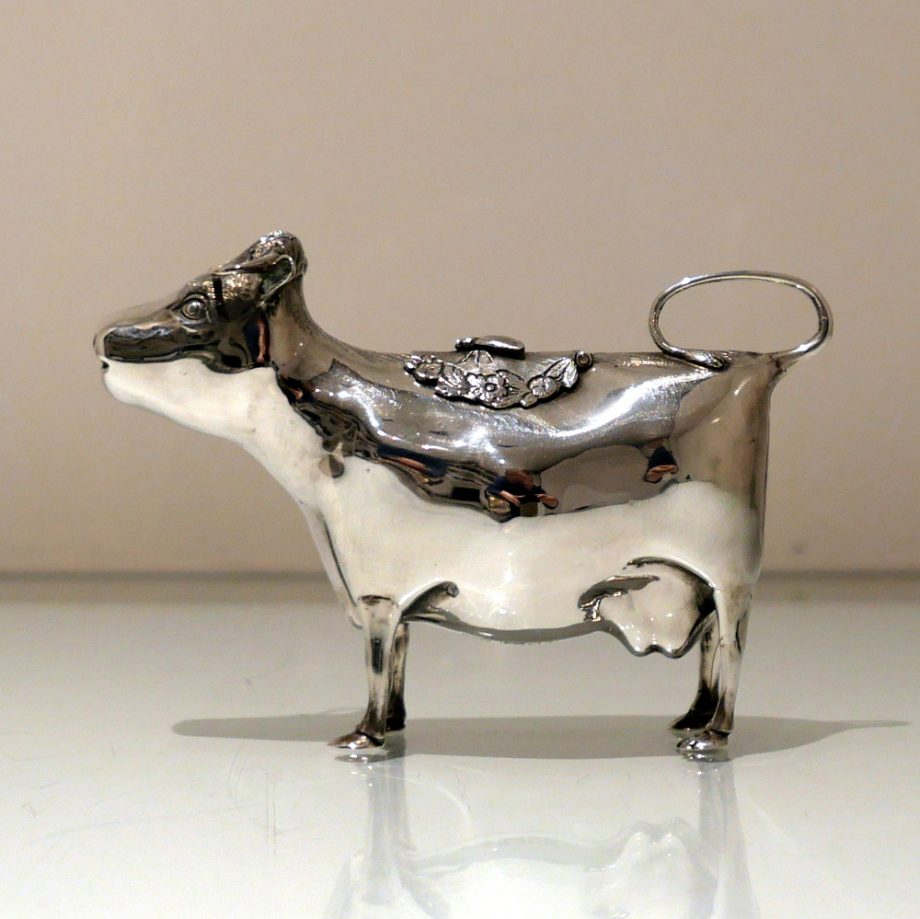 Note:  More often than not cow creamers were imported from Holland/Germany  and either import marked or spuriously marked.  London made cow creamers are much rarer.  Incidentally London made cow creamers first appeared circa 1750’s maker John Schuppe.