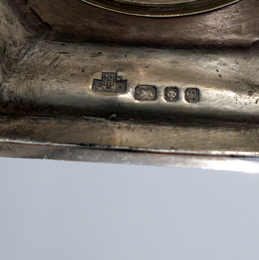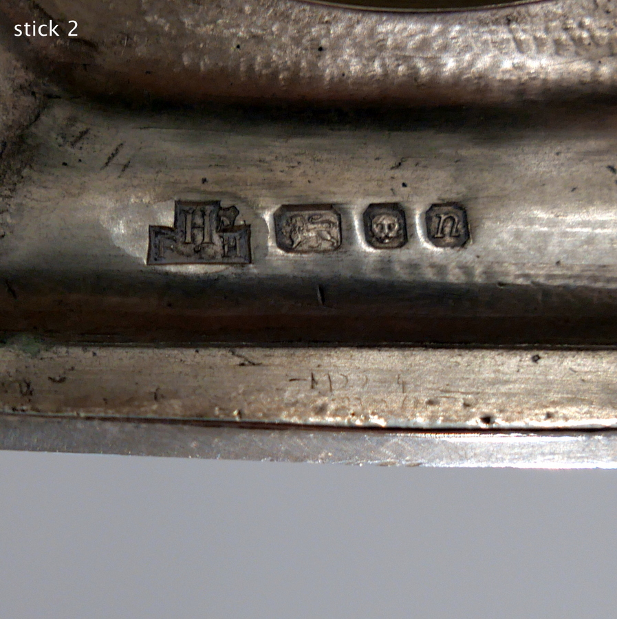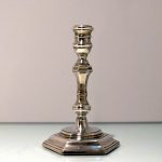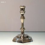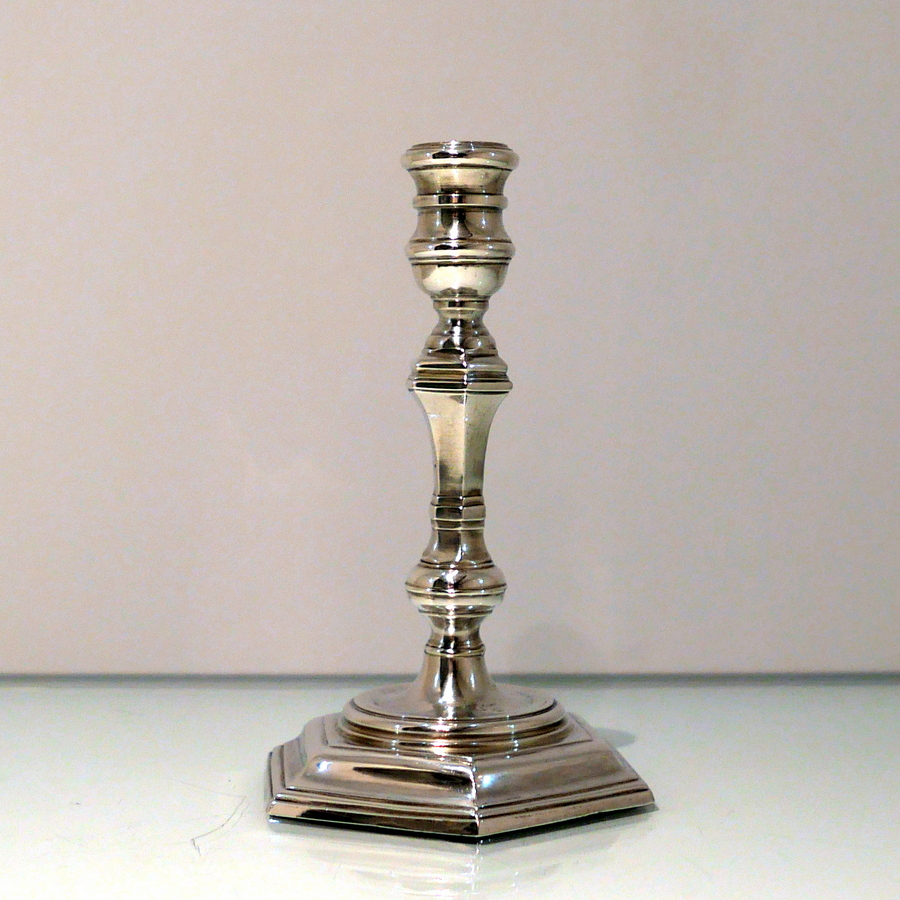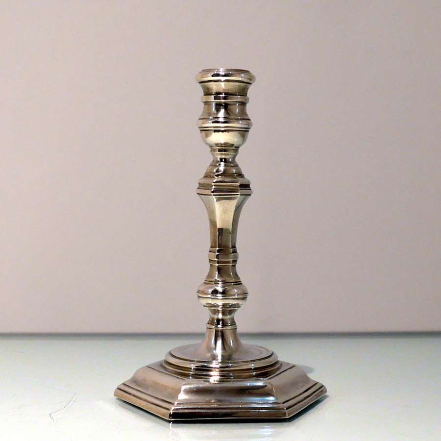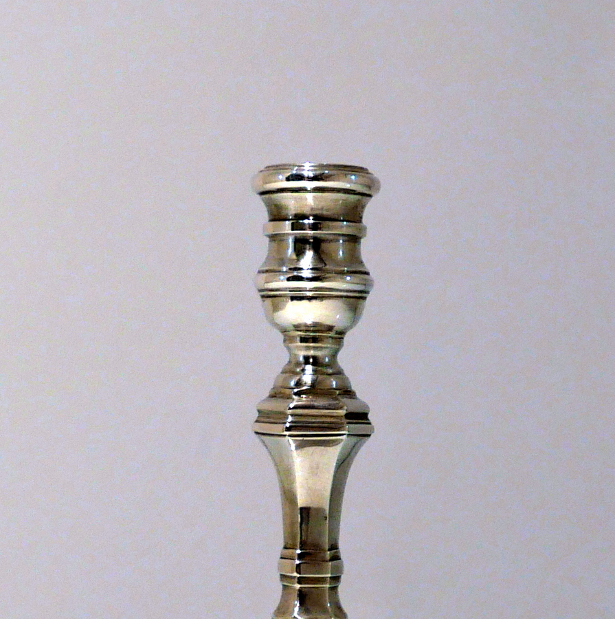 A stunning quality pair of plain formed sterling silver hexagonal cast (bases) candlesticks designed with strap work capitals, tapering stems and sunken in wells.