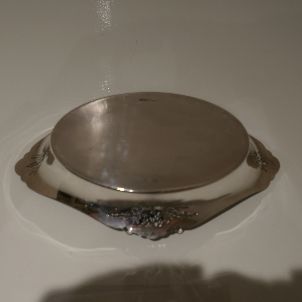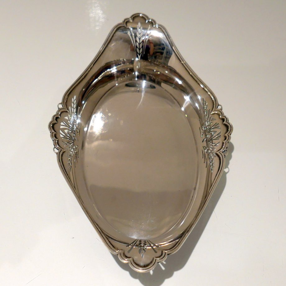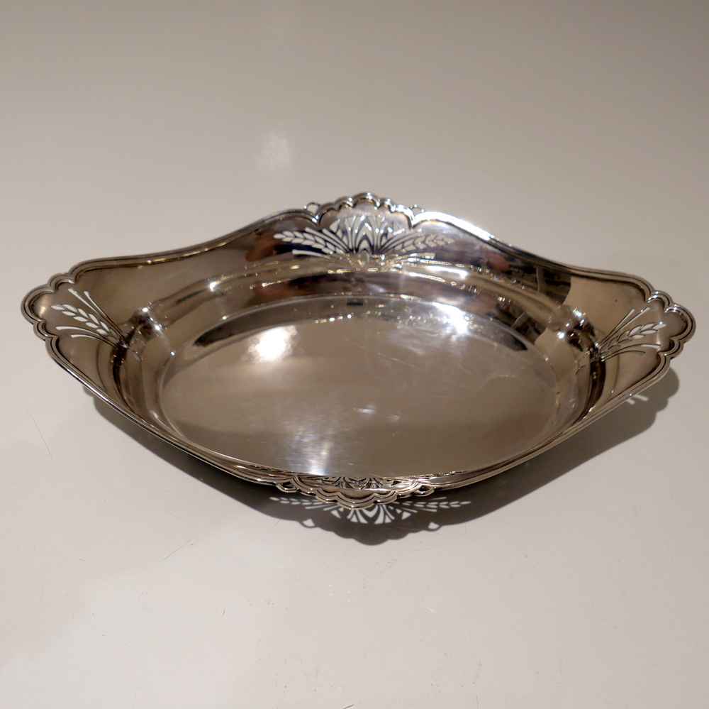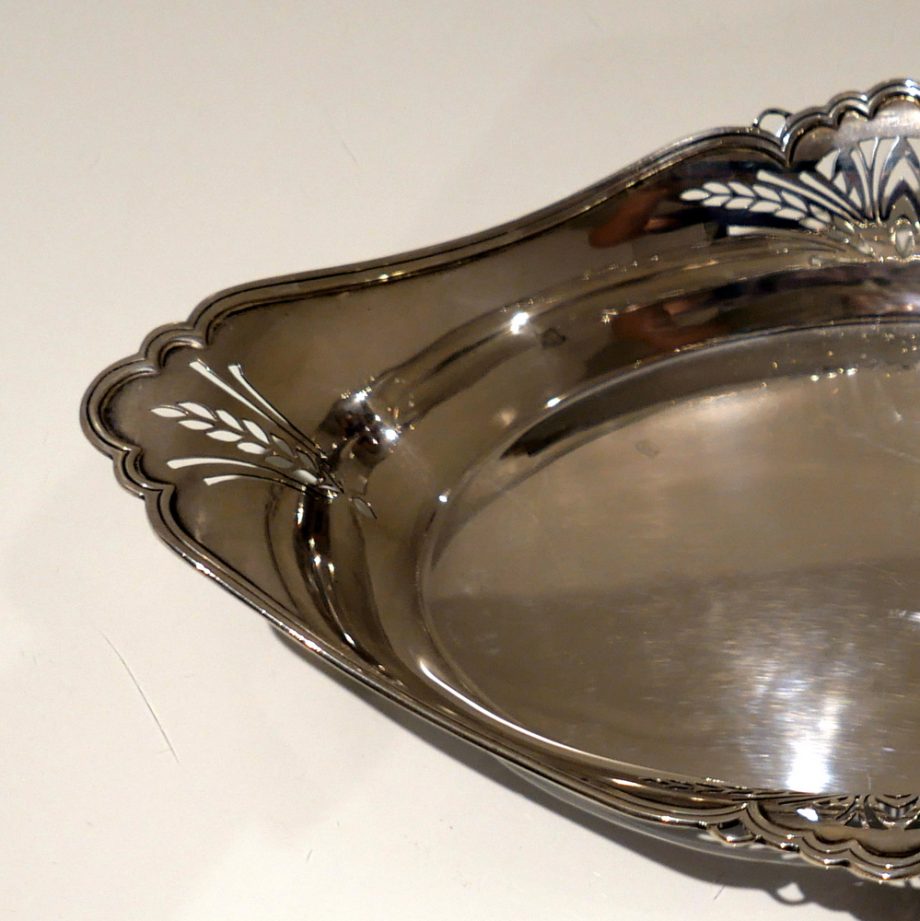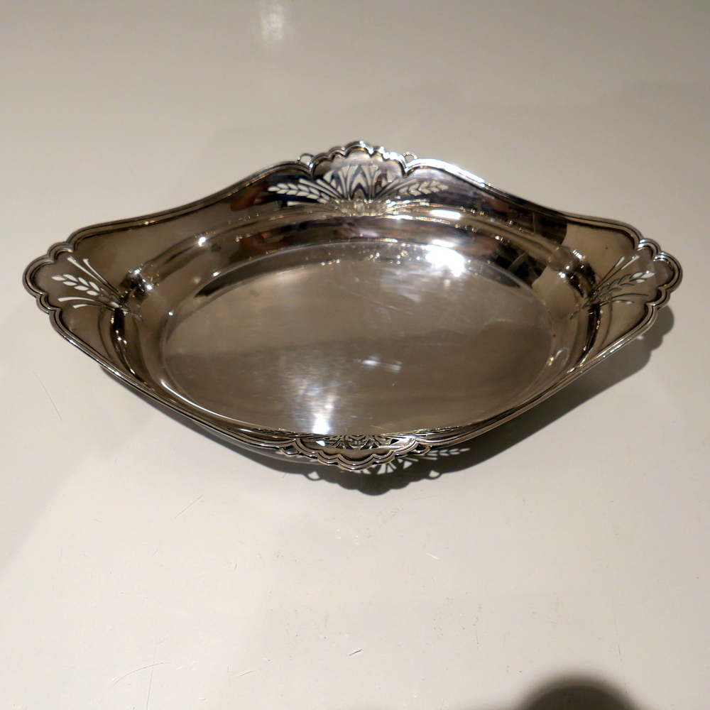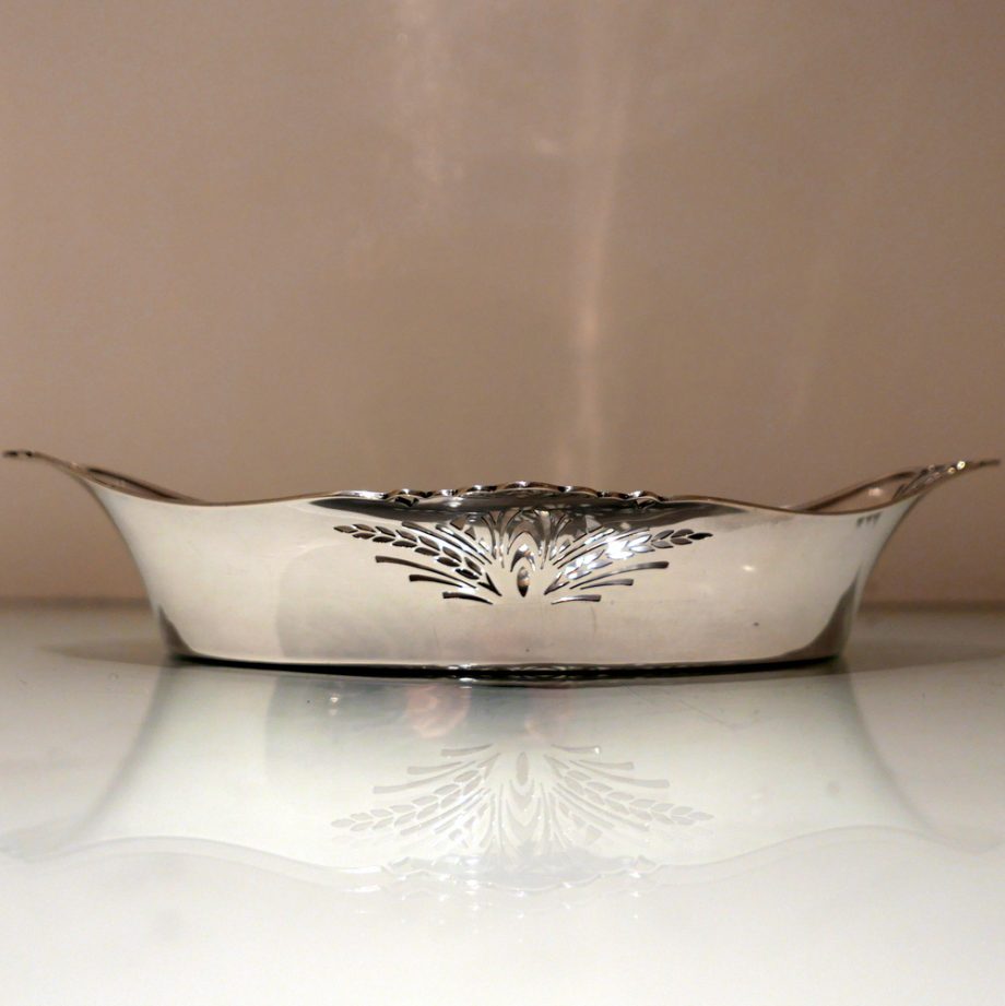 A delightful 20th century sterling silver shaped oval roll dish decorated with elegant piercing to the angles.
