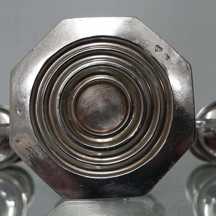 In 1893 the firm absorbed The Goldsmiths’ Alliance Ltd (late A.B. Savory & Sons) and in 1898 became the Goldsmiths & Silversmiths Co Ltd being active as jewellers, dealers in diamonds and precious stones, silversmiths, electroplaters and watch and clock makers. Â In 1952 Goldsmiths & Silversmiths Co Ltd was amalgamated with Garrard & Co Ltd. Â The firm participated to a number of national and international exhibitions, as Indian and Colonial Exhibition (London, 1886), Paris (1889), Chicago (1893), California (1894), Paris (1900) and Franco-British Exhibition (London, 1908). Â The Goldsmiths & Silversmiths Co was active with manufactories at Newcastle Place, Clerkenwell; Regent Works, Sheffield and Rue St George, Paris and as retailer of items supplied by various British gold and silver manufacturers (Martin Hall & Co Ltd, W&G Sissons, Wakely & Wheeler, William Comyns, Harrison Brothers & Howson, etc.)
