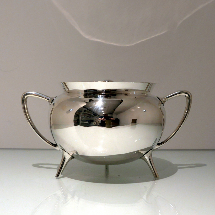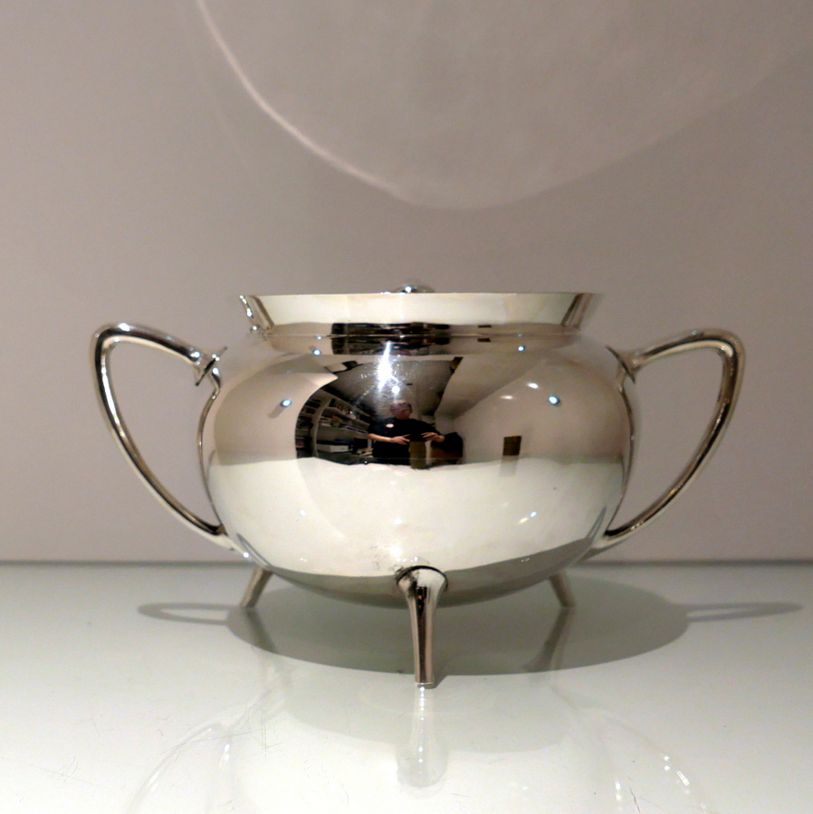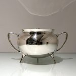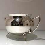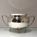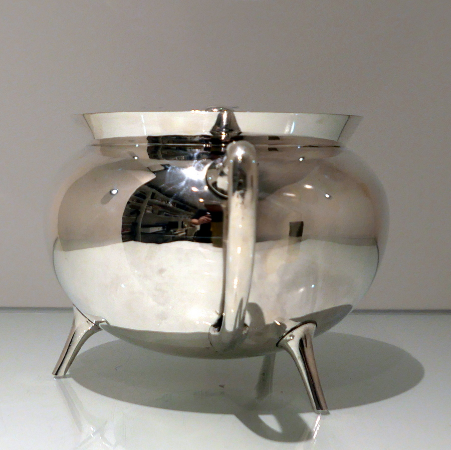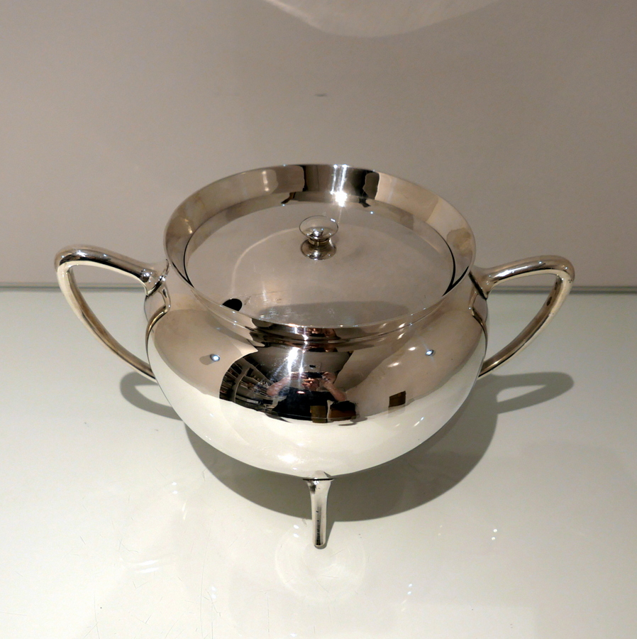 An extremely stylish and incredibly rare large silverplate circular ‘cauldron’ soup tureen. Â The tureen is styled on a christopher dresser design with bulbous bowl and ‘flared’ upper wire rim. Â The lid is detachable.