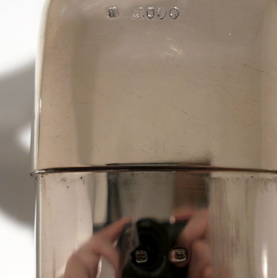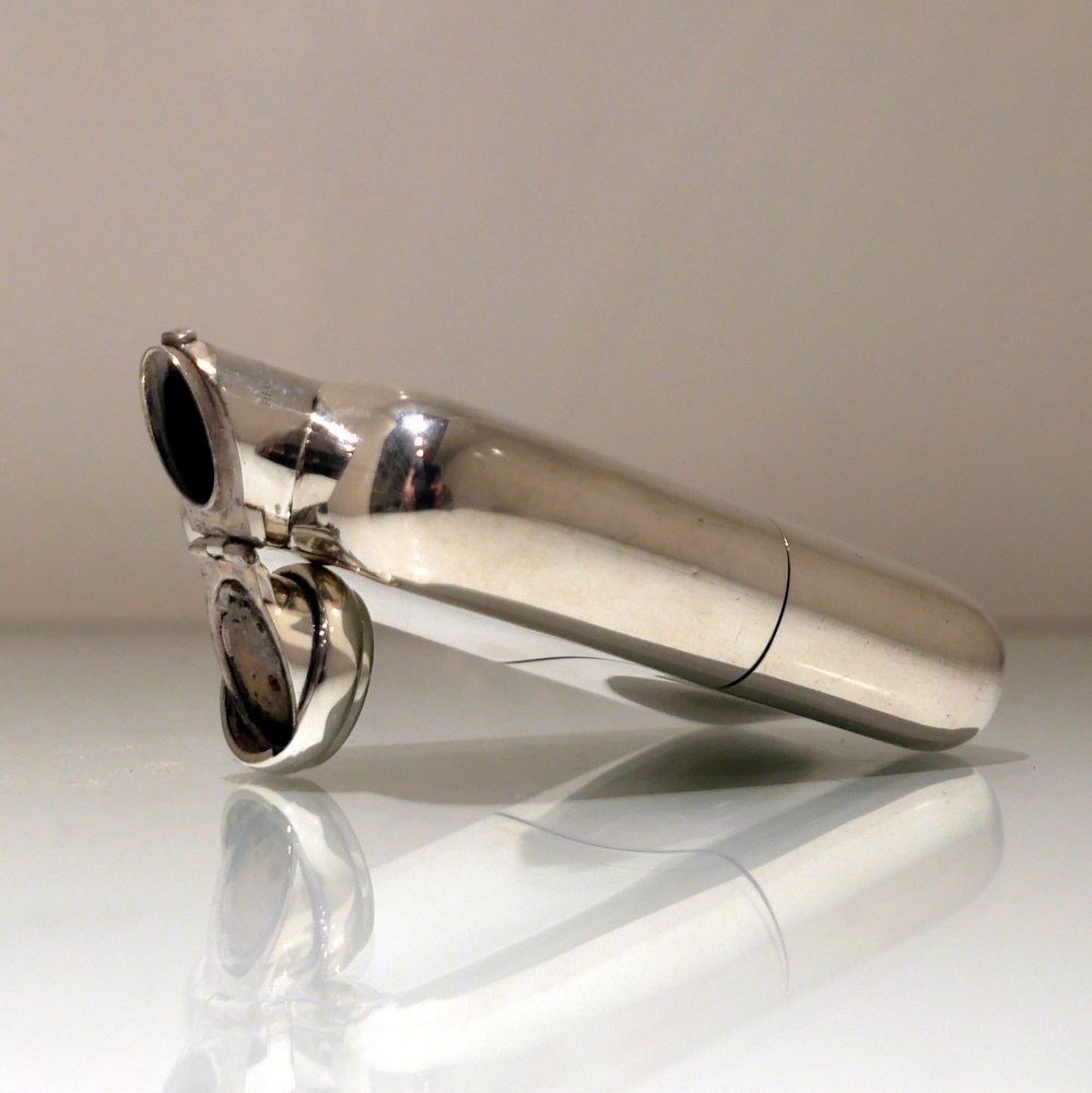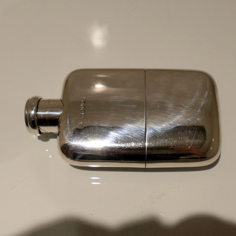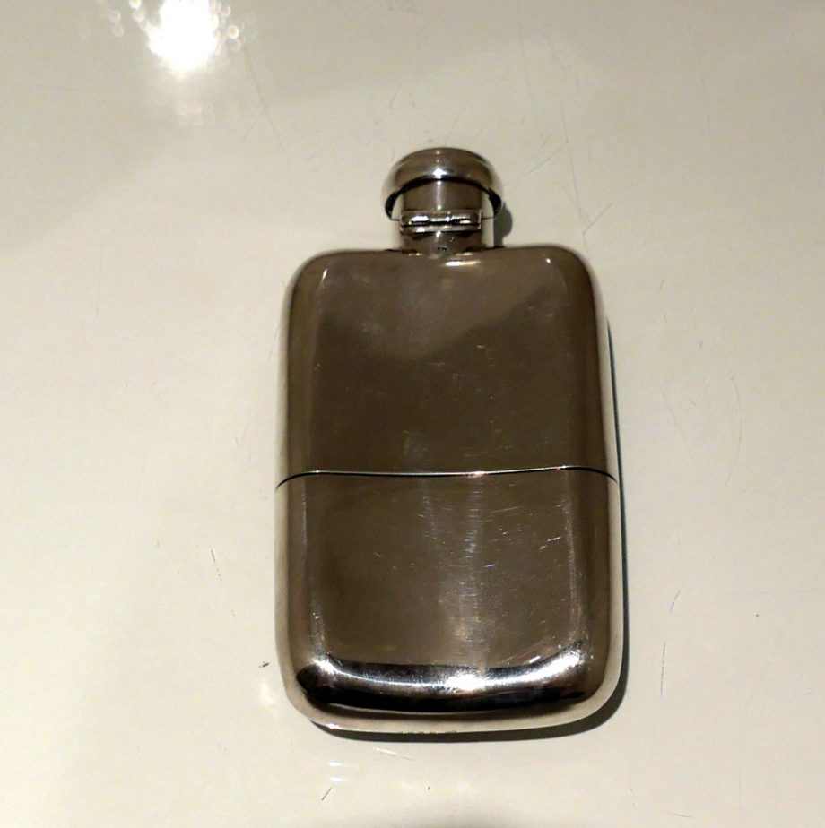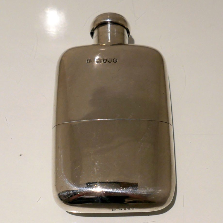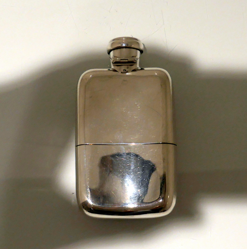 A splendid looking and incredibly fine sterling silver Victorian hip flask, plain formed in design and bearing ‘featured’ hallmarks for decorative importance. Â The detachable ‘sleeve’ fitted beaker is has elegant gilding inside and the stylish ‘flip’ hinged lid adds creative styling.
