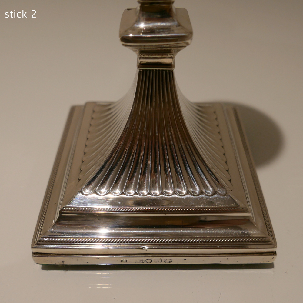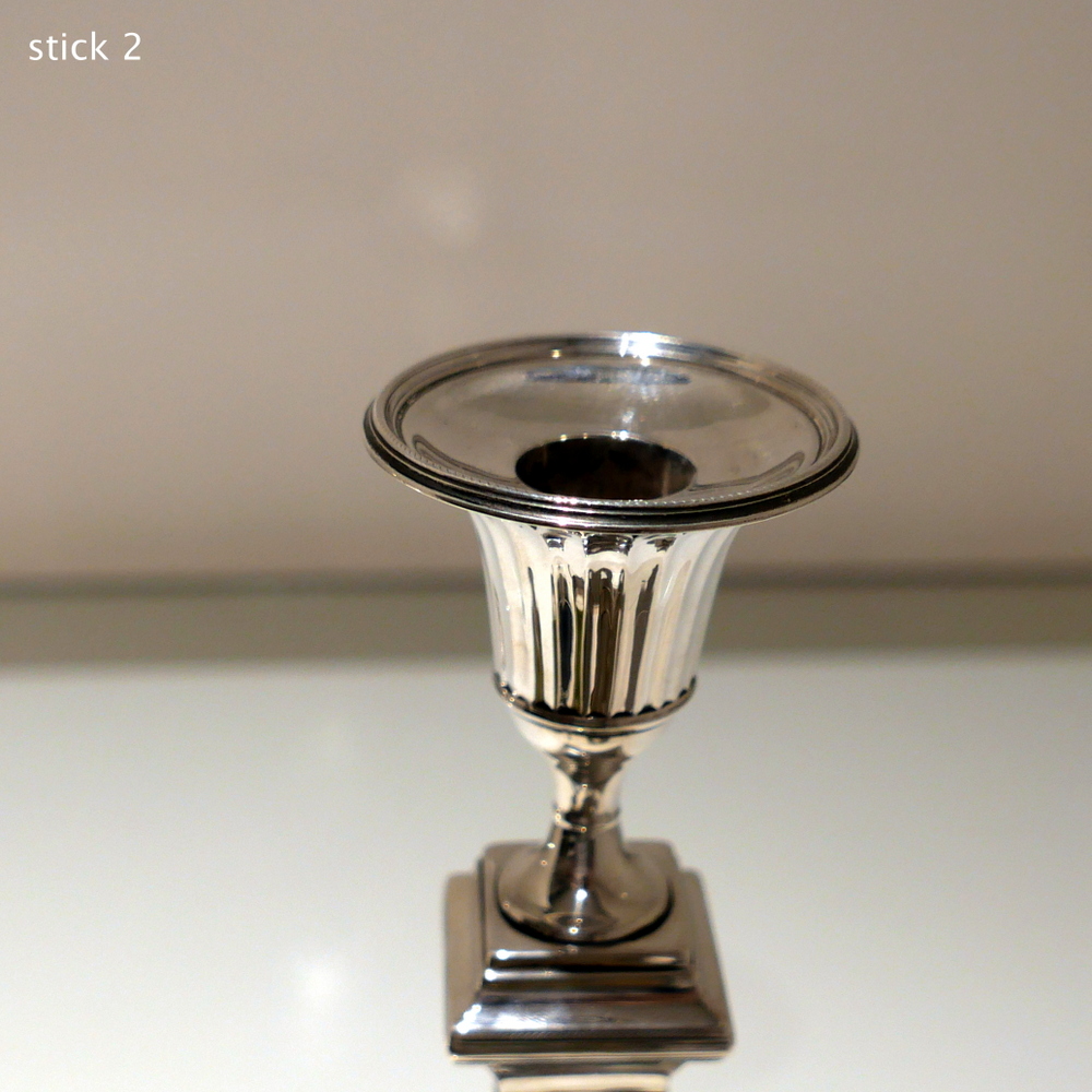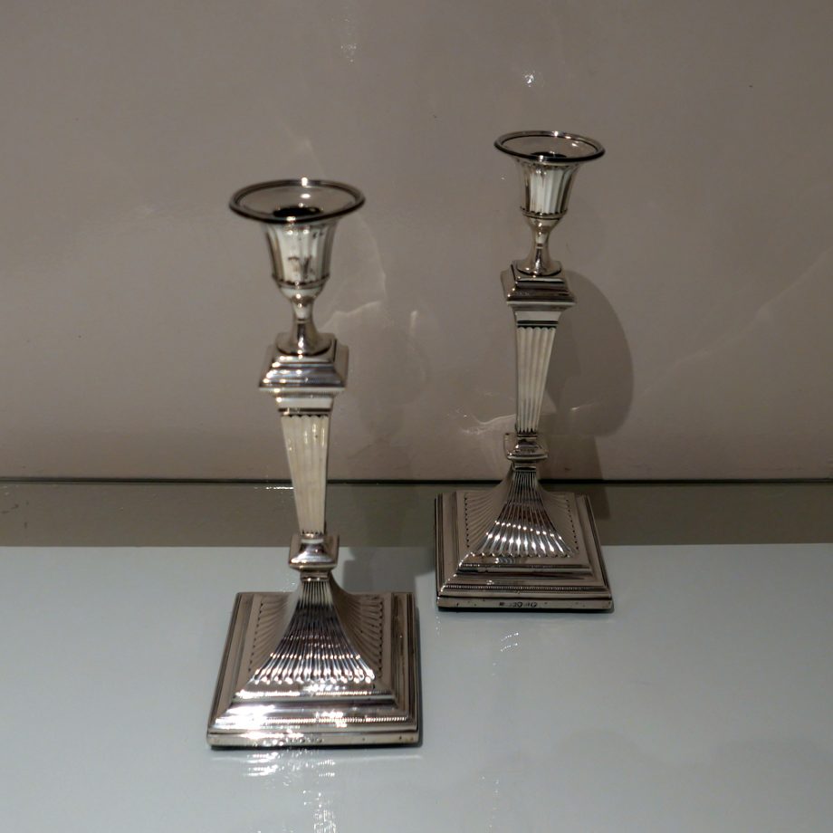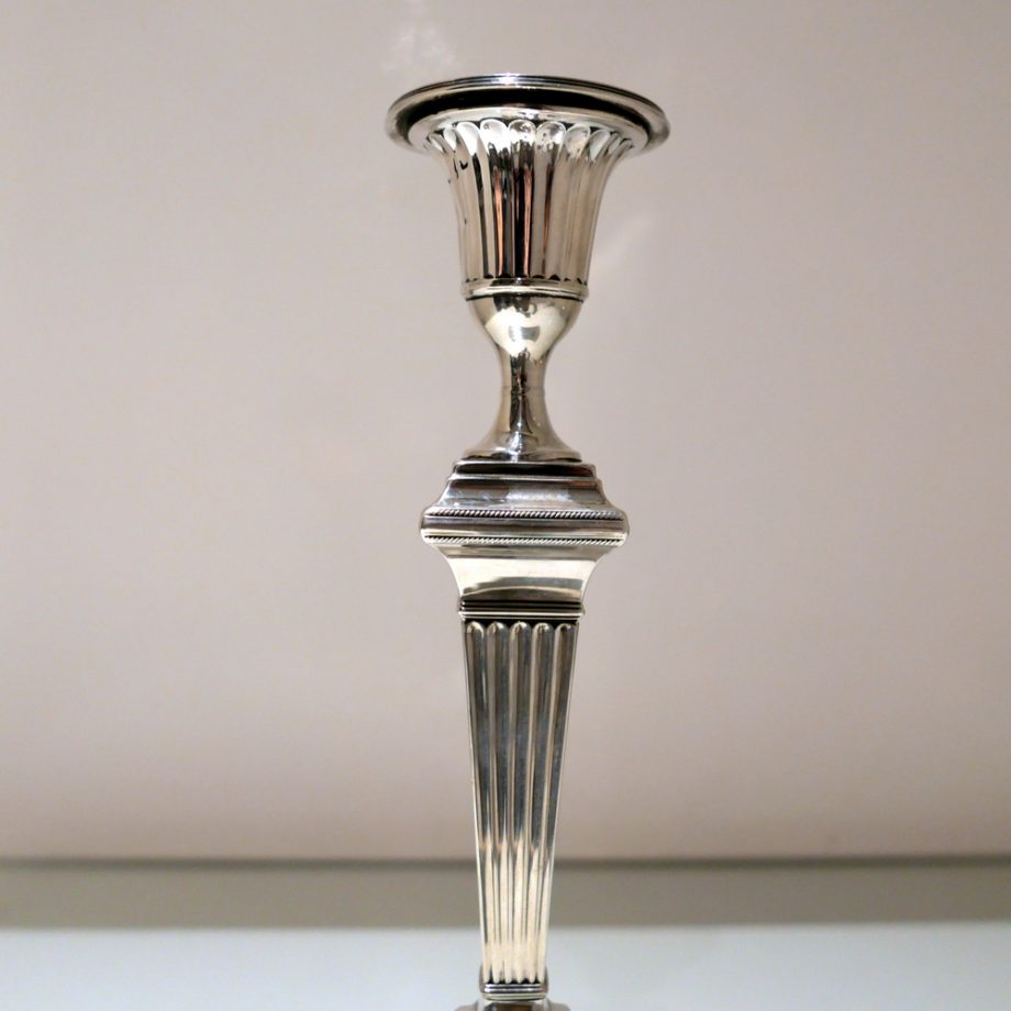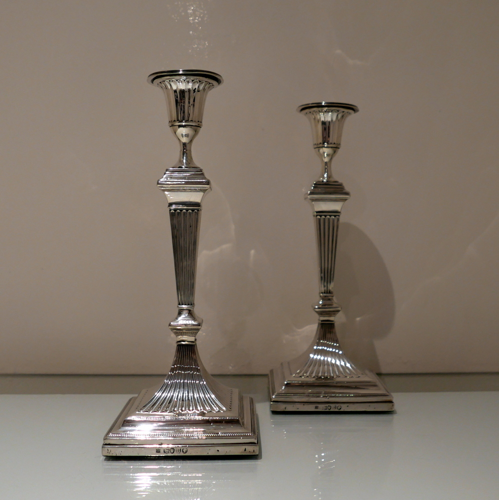 A beautiful pair of Victorian sterling silver fluted candlesticks decorated with a double bead ornate base. Â The circular nozzles are detachable.