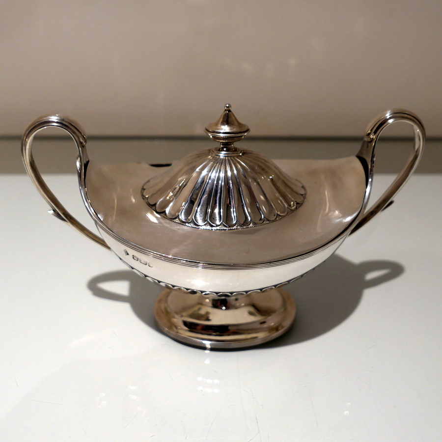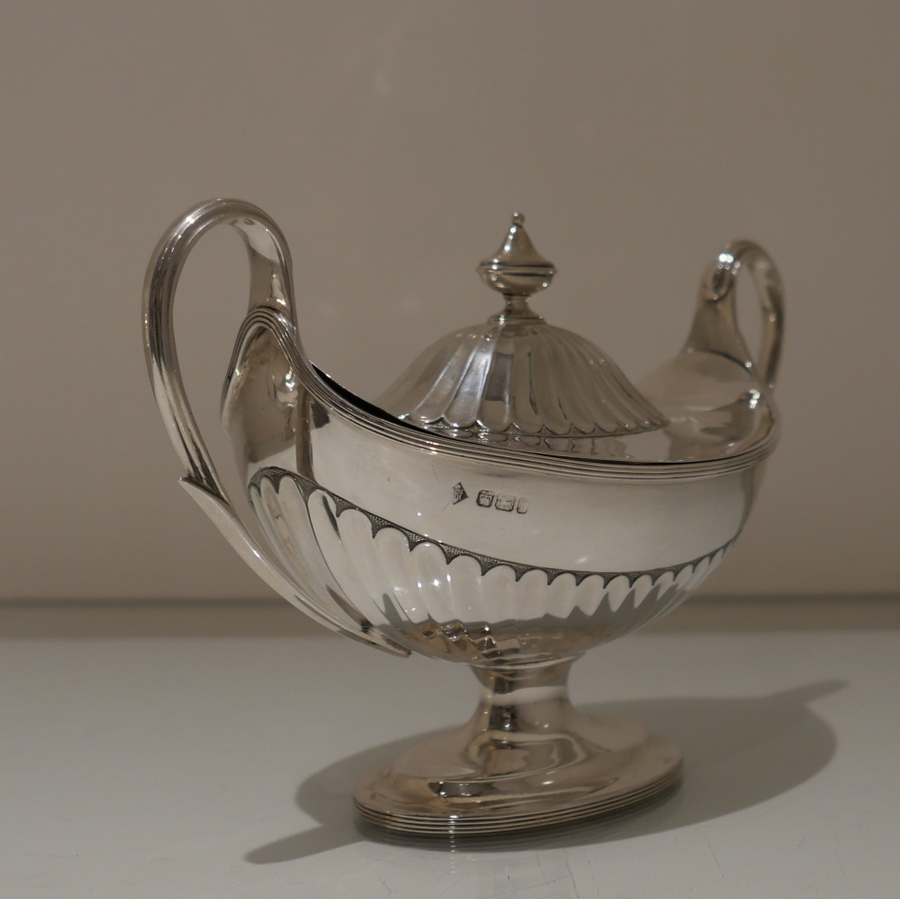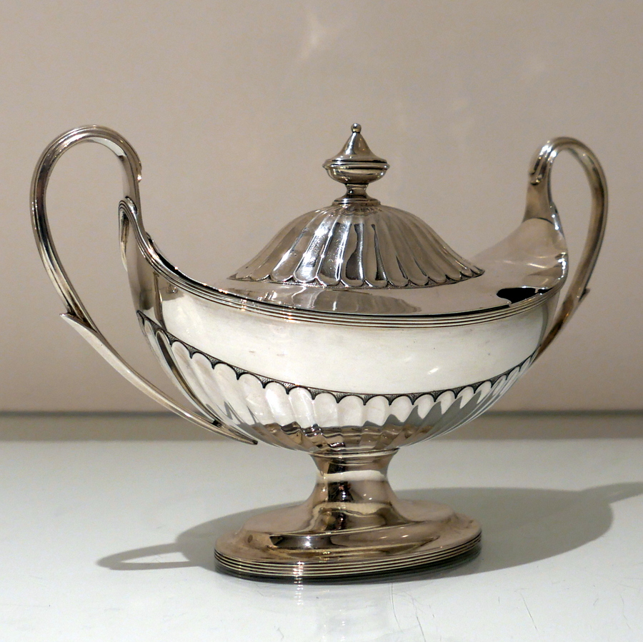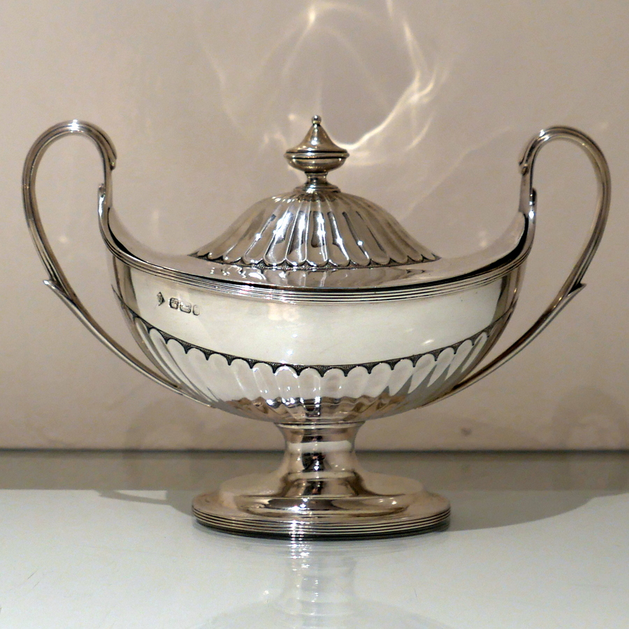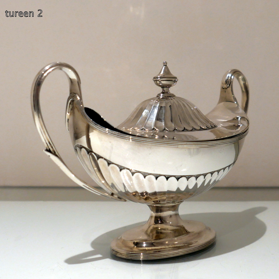 A stunning and incredible quality pair of late 19th century “boat” shaped half fluted sauce tureens and covers standing on elegant oval pedestal feet and having stylish scroll handles.