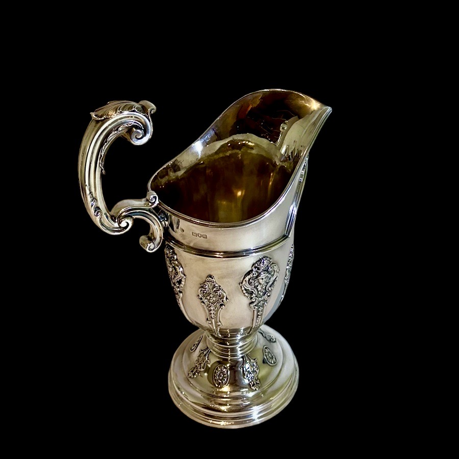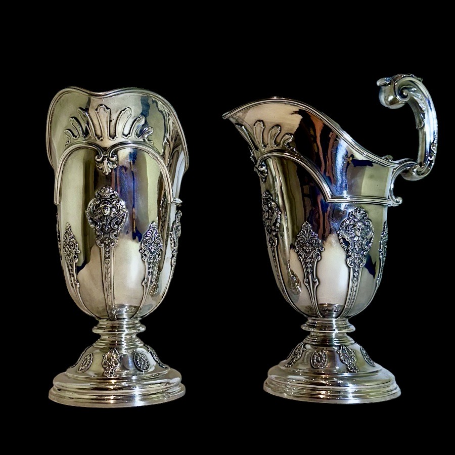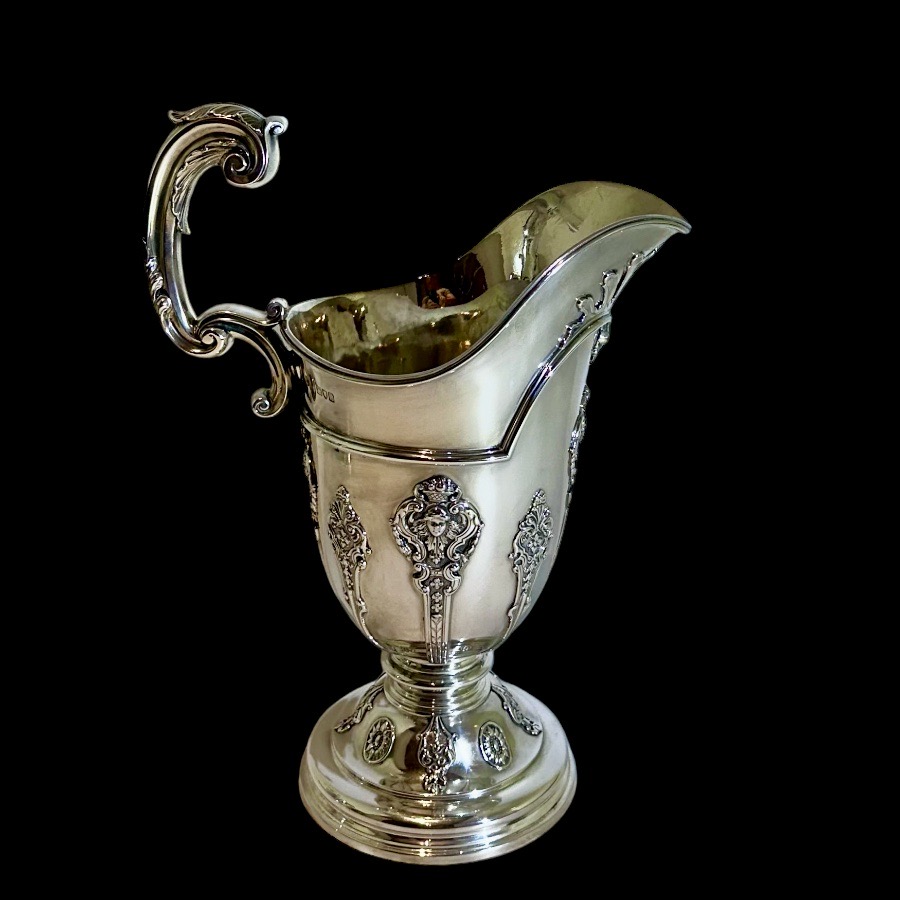 Note:Â One jug is made by the Barnard family and the other is made by Goldsmiths & Silversmiths identical pair other than makers mark.