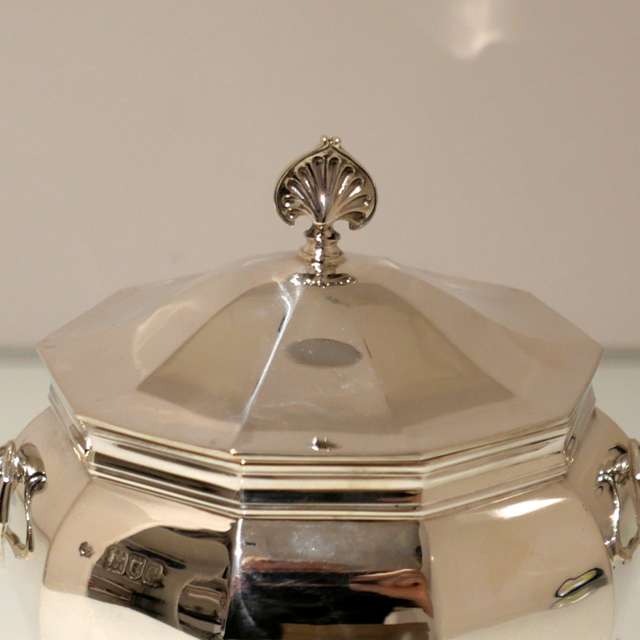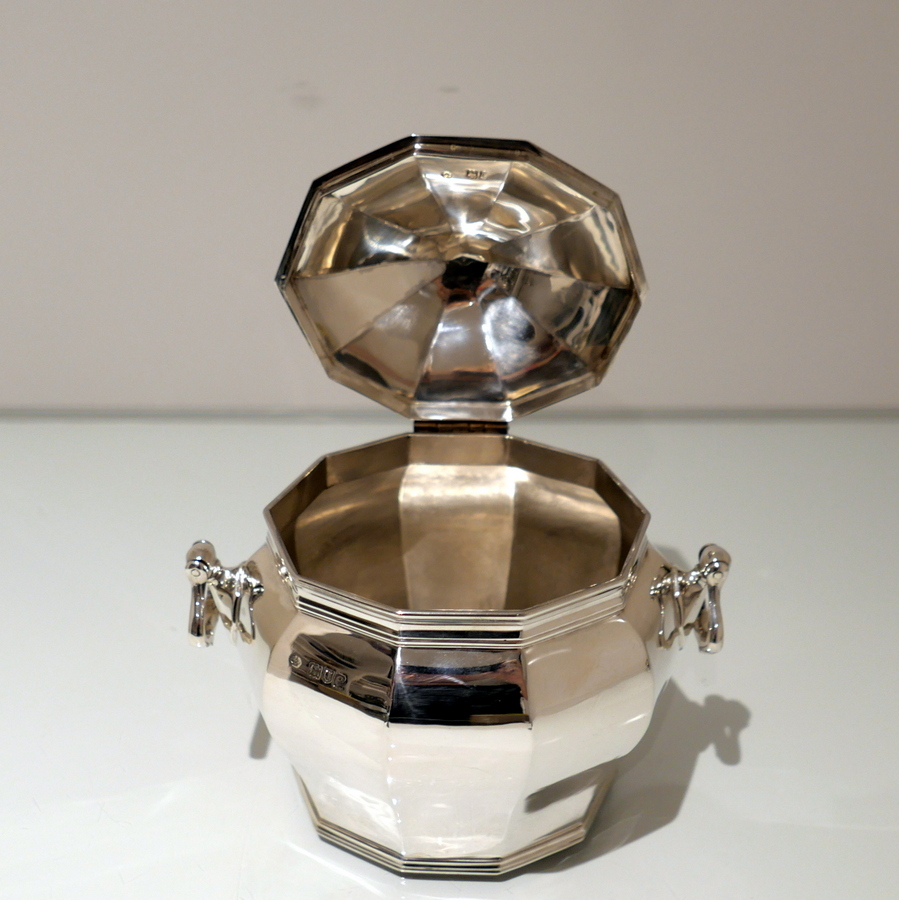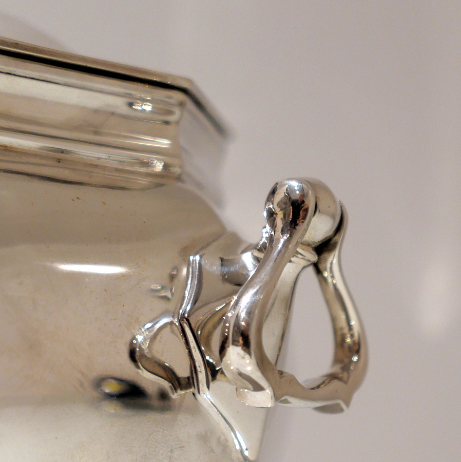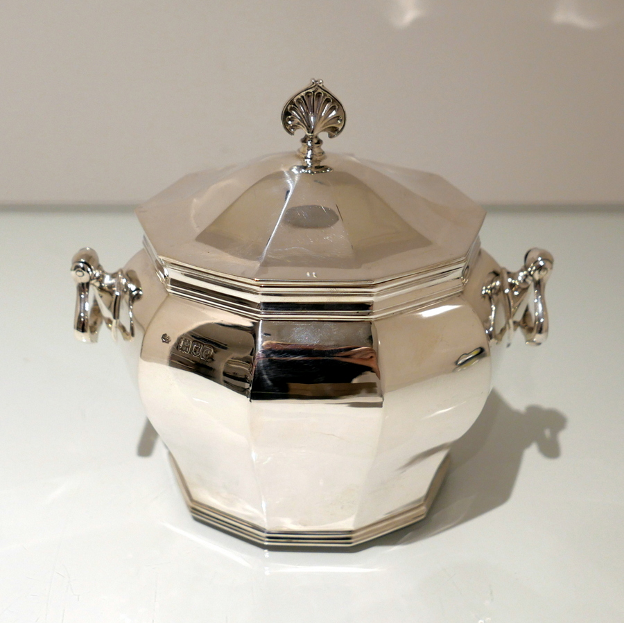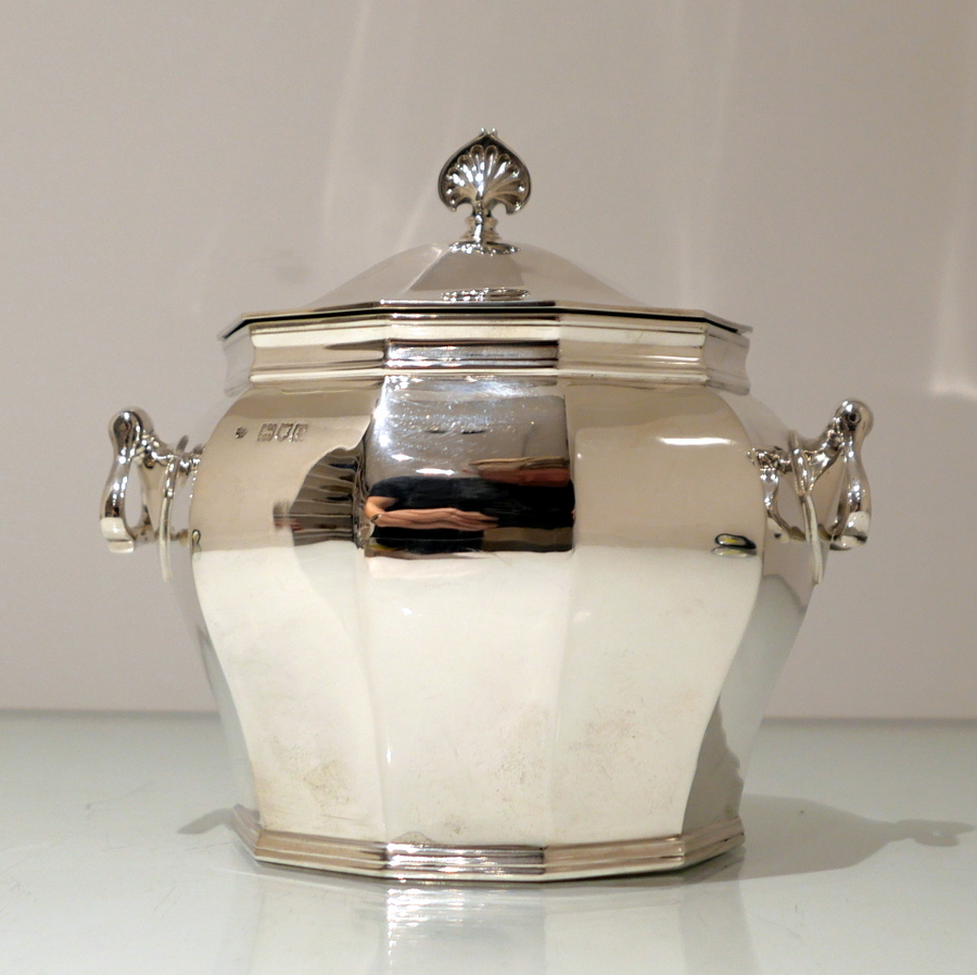 A truly fine late Victorian sterling silver shaped oval biscuit box elegantly plain formed in style and designed with a delightful ‘boxwaisted’ panelled body. Â The elegantly domed lid is hinged and crowned with a beautiful finial.
