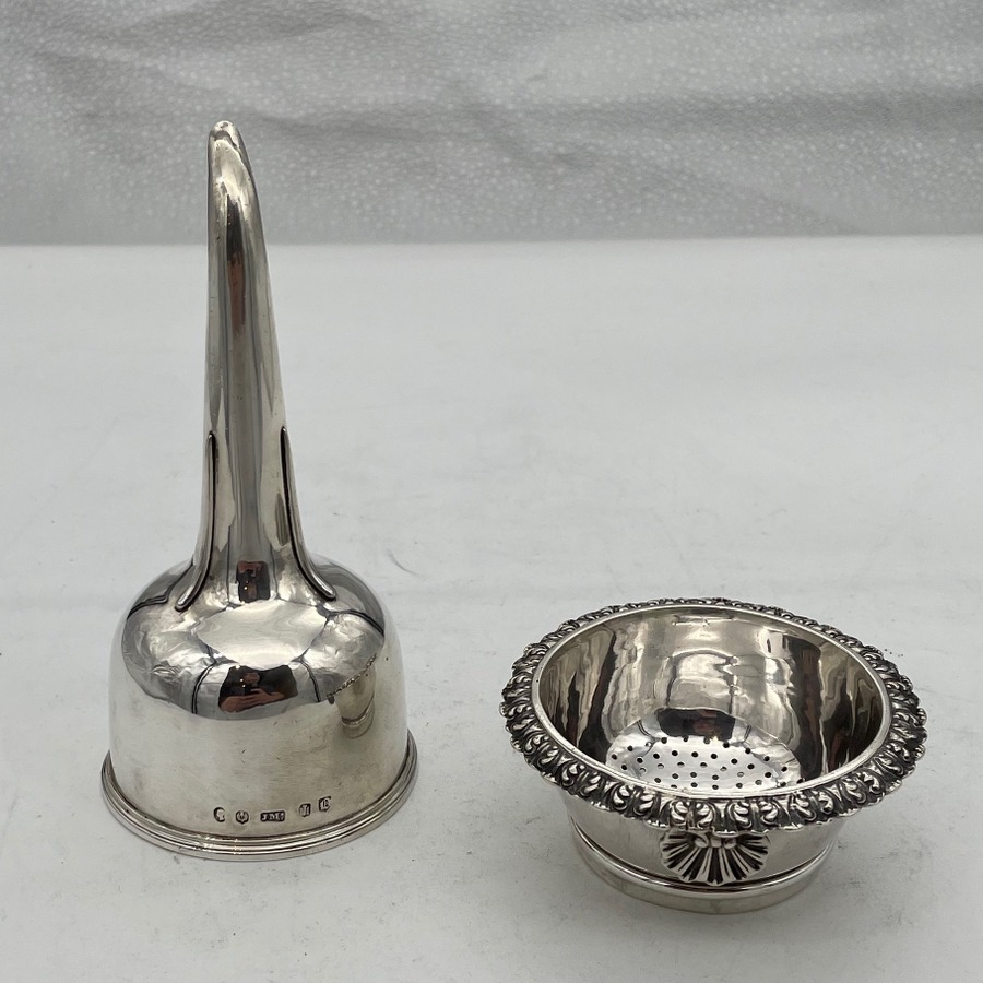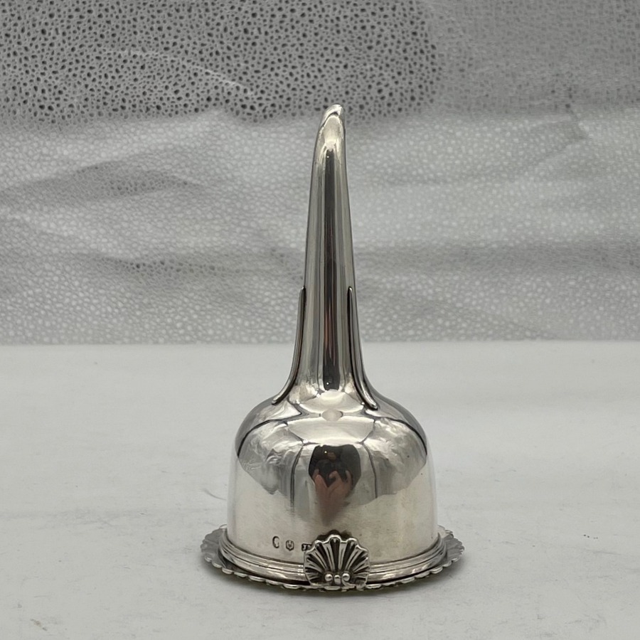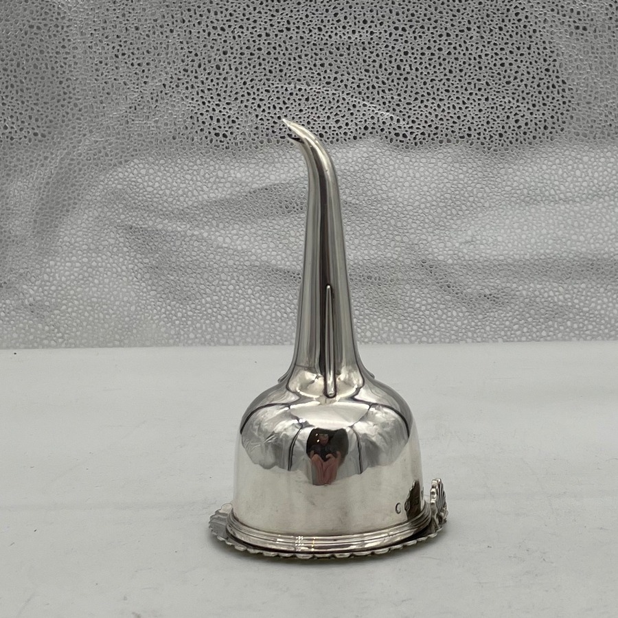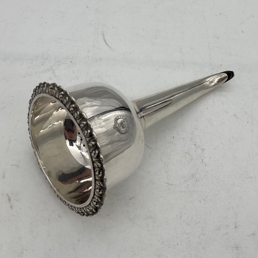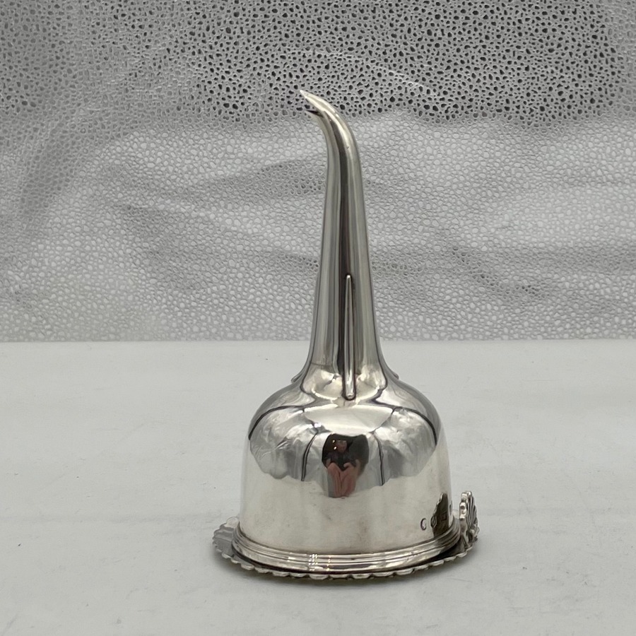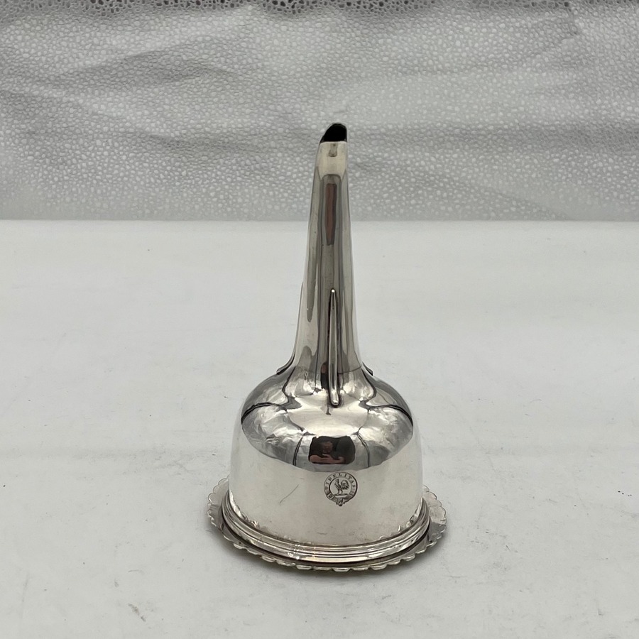 A rare Victorian silver Edinburgh made wine funnel designed with an elegant plain formed body and an upper ribbed decorated spout. Â The detachable strainer has an ornate outer border and the central body has a wonderful contemporary regimental style hand engraved contemporary crest for importance.