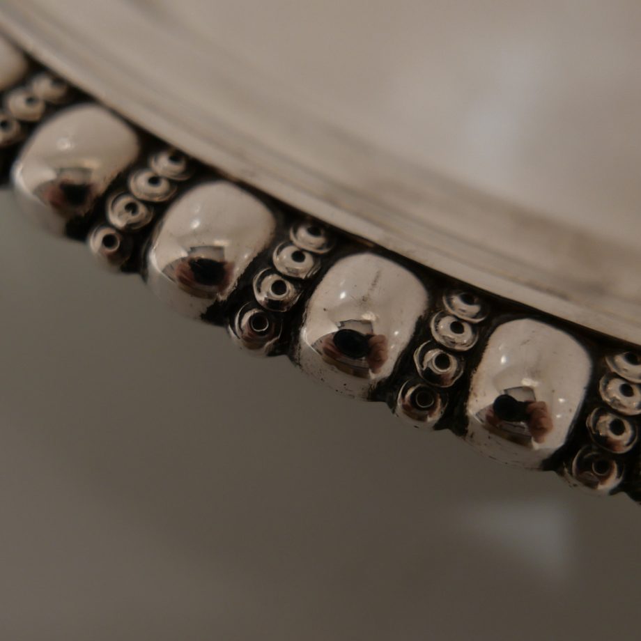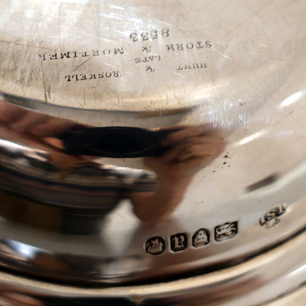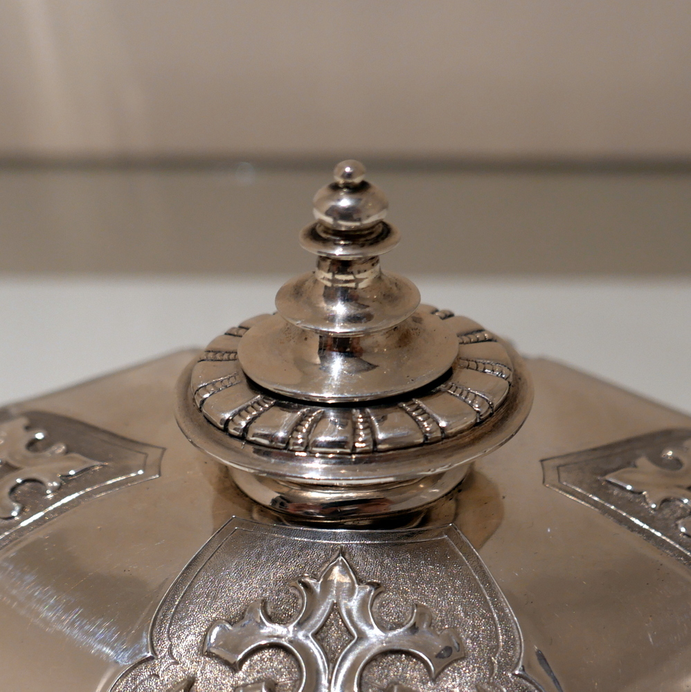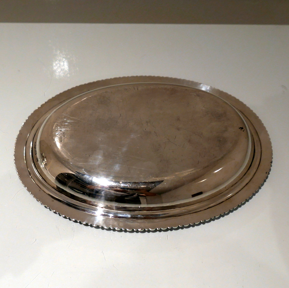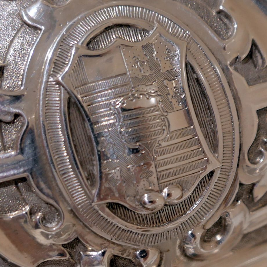 A truly impressive sterling silver oval entree dish and cover made by the renowned silversmith John S Hunt. Â The detachable lid is superbly decorated with incredibly ornate hand chasing which alternate plain formed panels for decorative contrast. Â The base has a delightful egg & tongue (style) border. Â There are contemporary applied armorials and crests respectively alternating within the ornate panels.