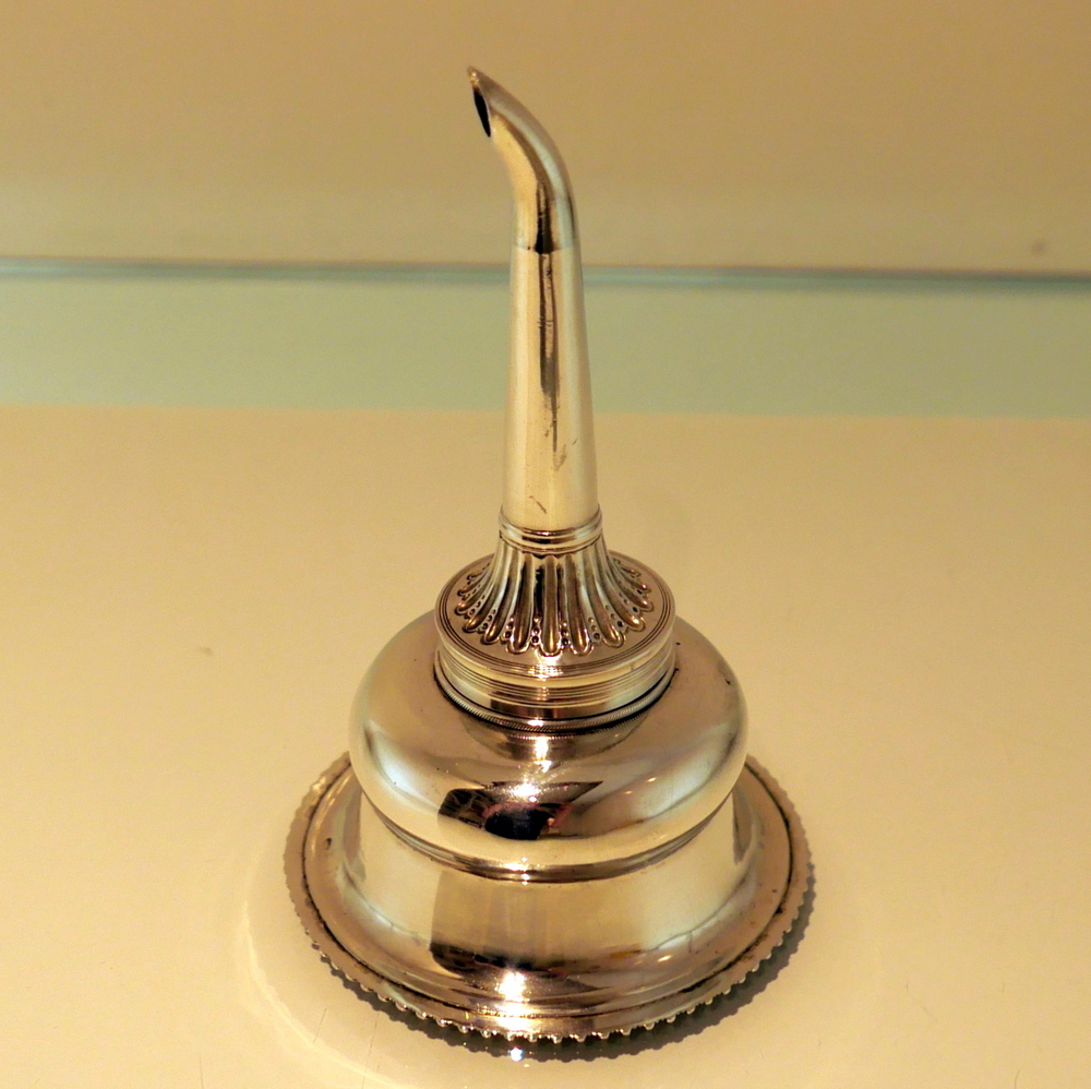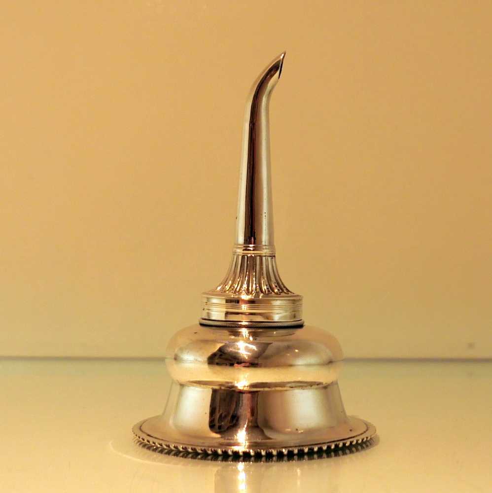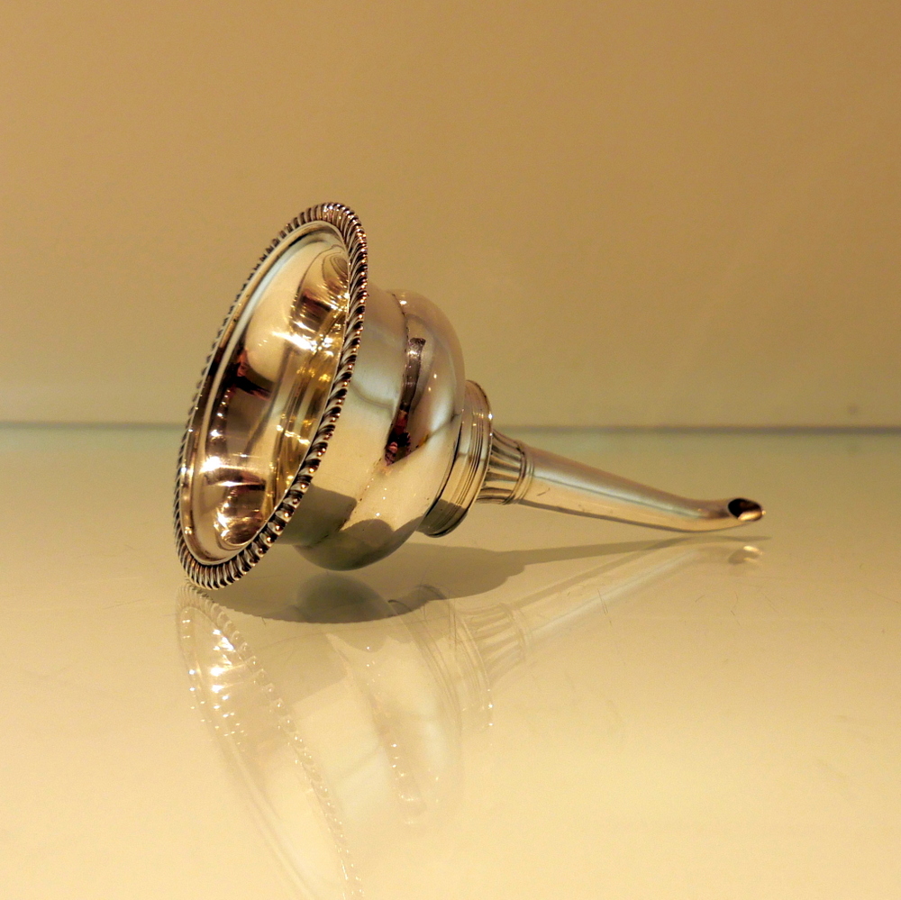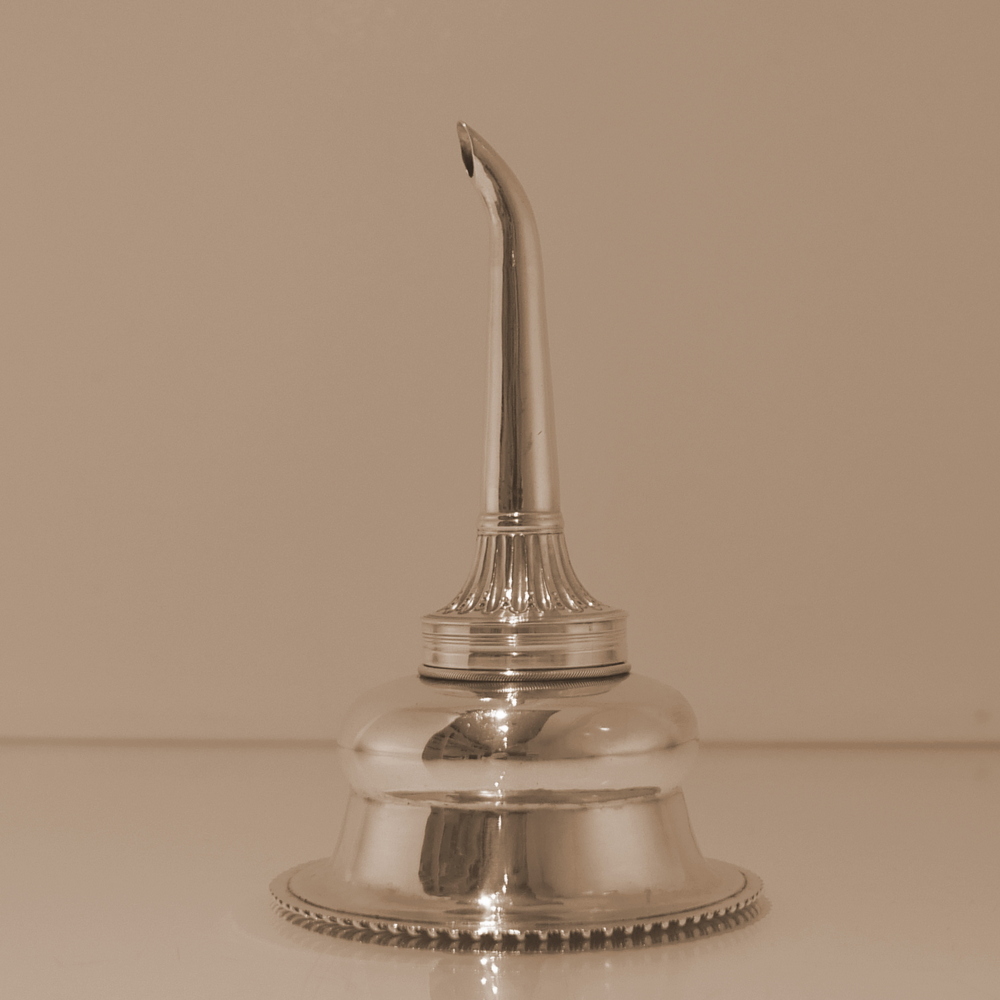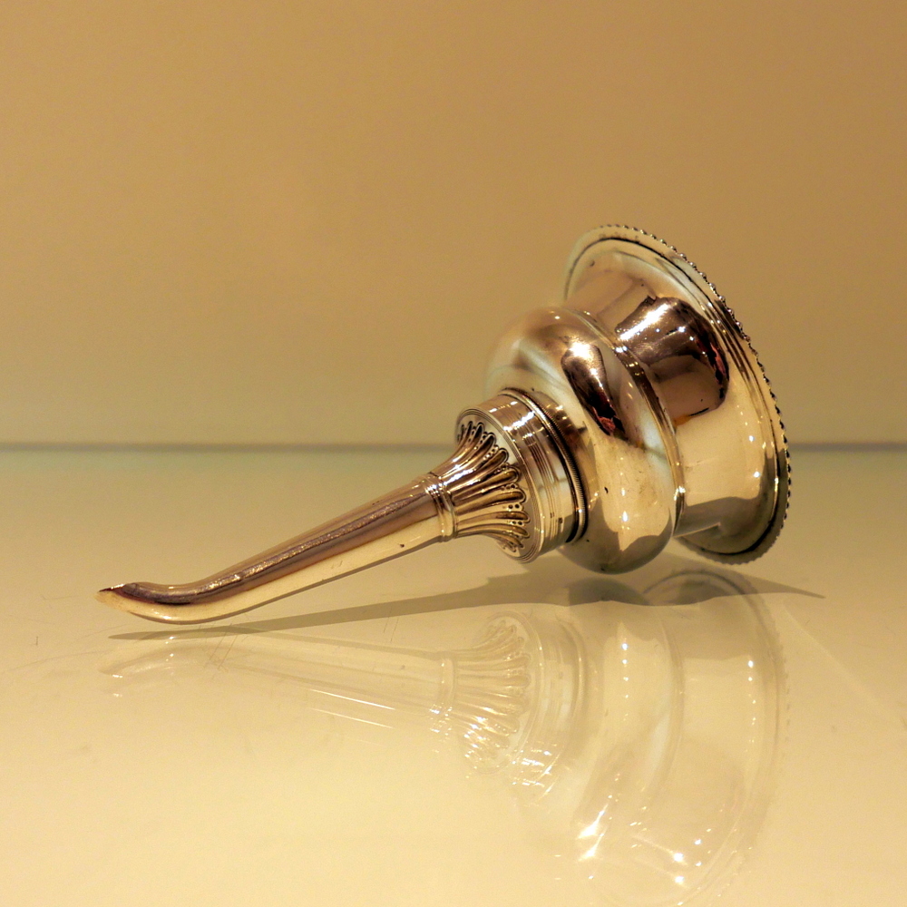 An incredibly rare and extremely collectable Scottish provincial wine funnel. Â The domed bowl has an elegant gadroon rim and the detachable spout has elegant outer decoration surrounding the upper sleeve.
