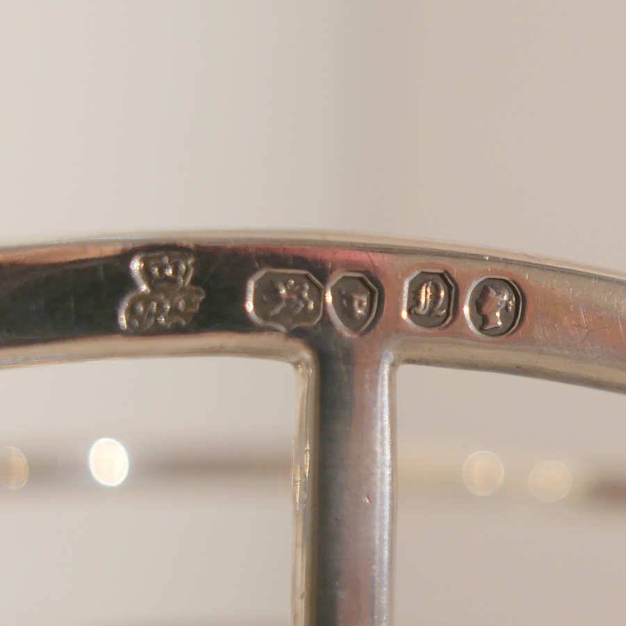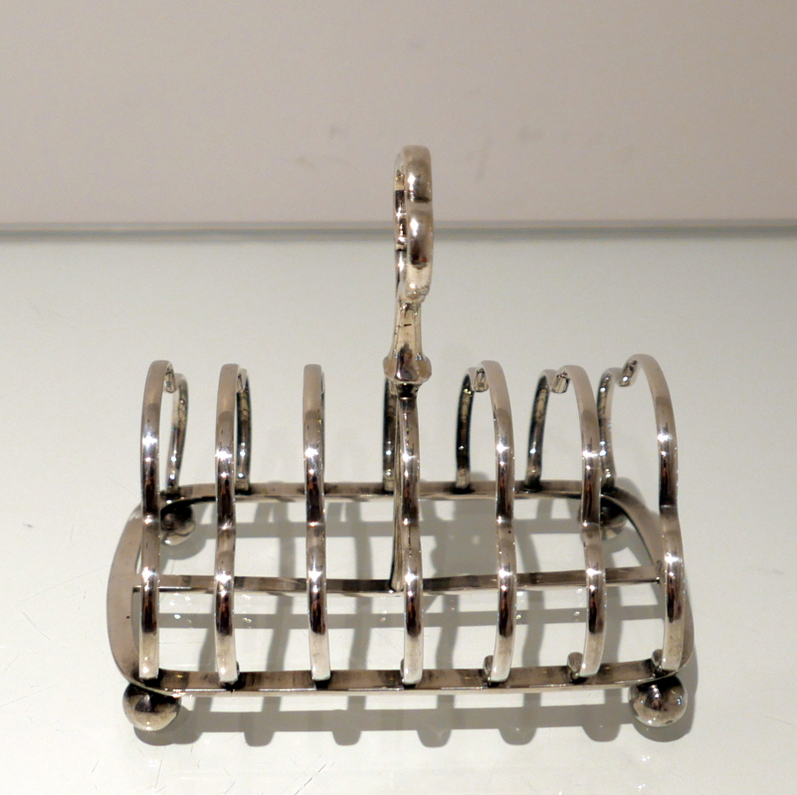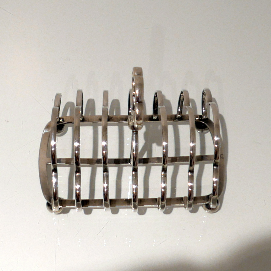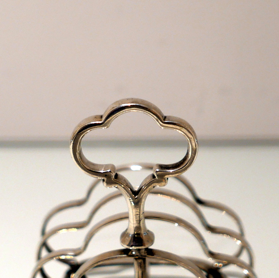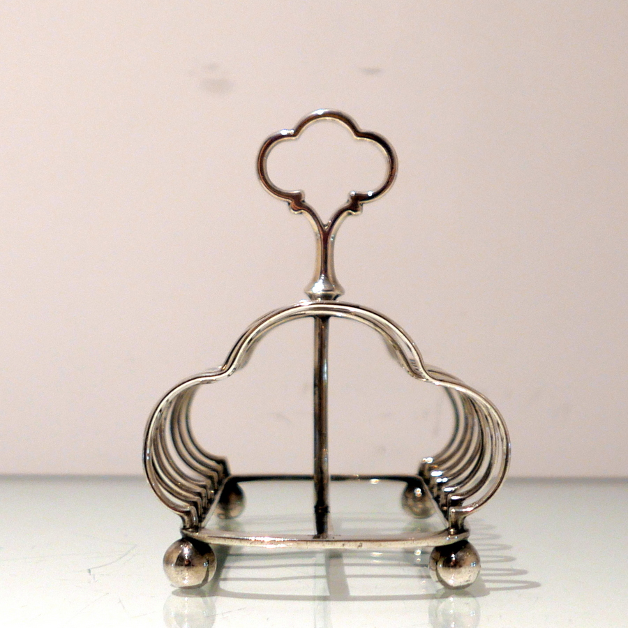 A very elegant sterling silver six place setting early Victorian toast rack made by the highly renowned silversmith Robert Garrard. Â The oblong shaped wire work frame and scroll style central bars create a delightful and highly usable object.