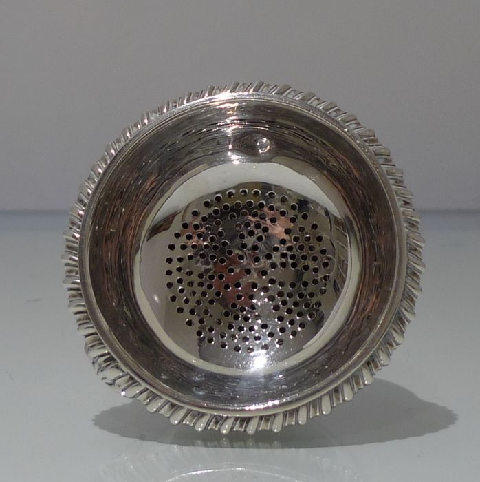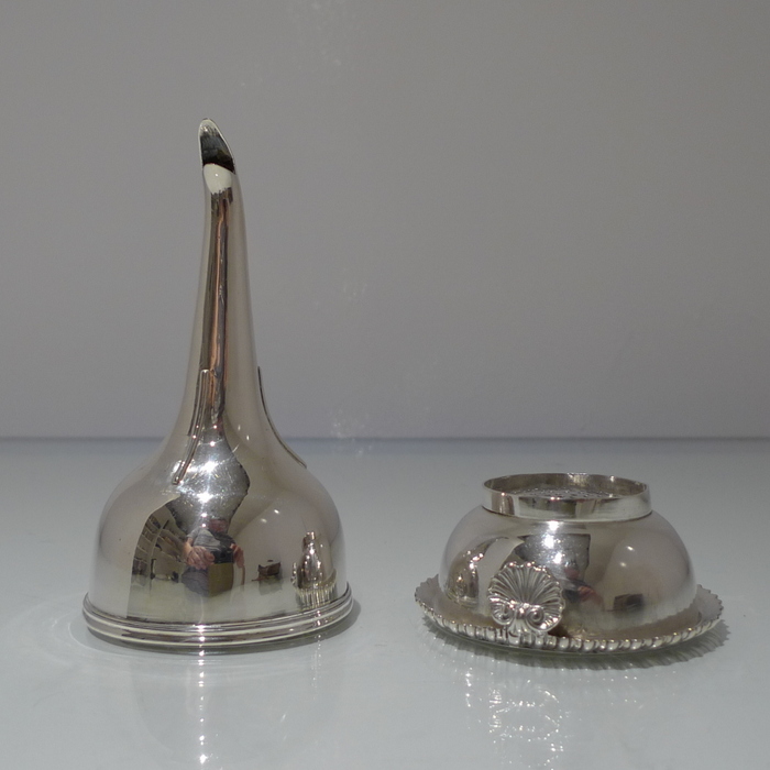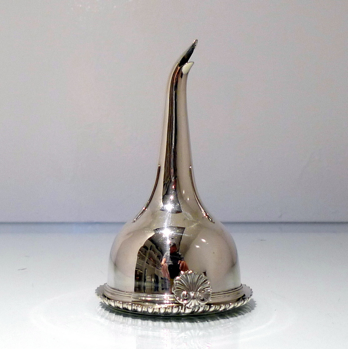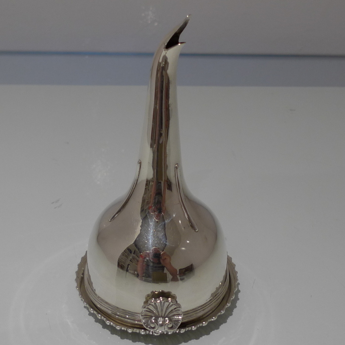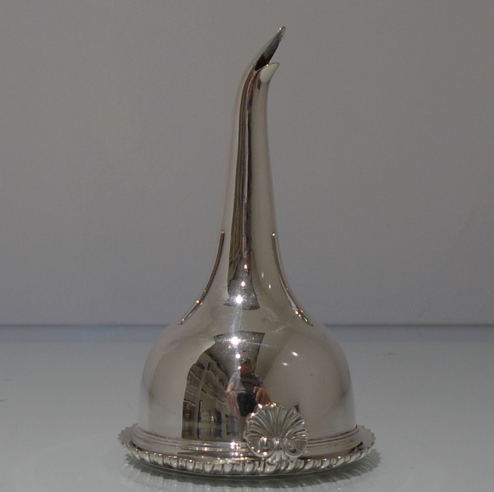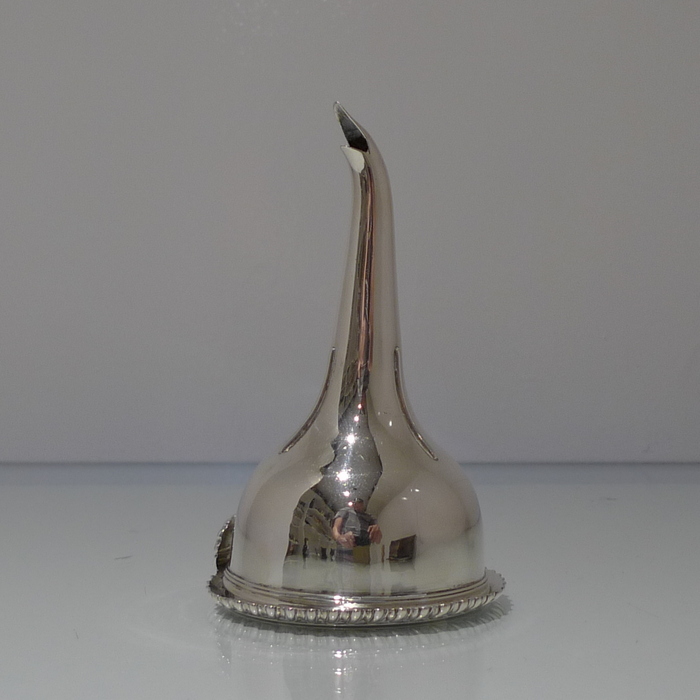 A beautiful 19th century plain formed wine funnel with elegant rib work decoration for highlights. Â The detachable bowl has an applied gadroon border and an elegant shell thumb piece.