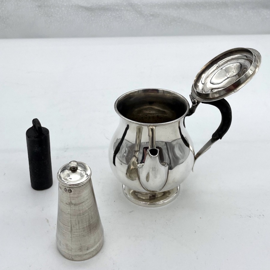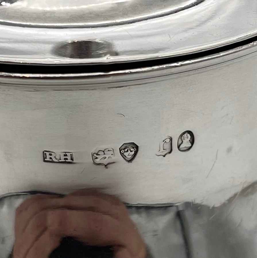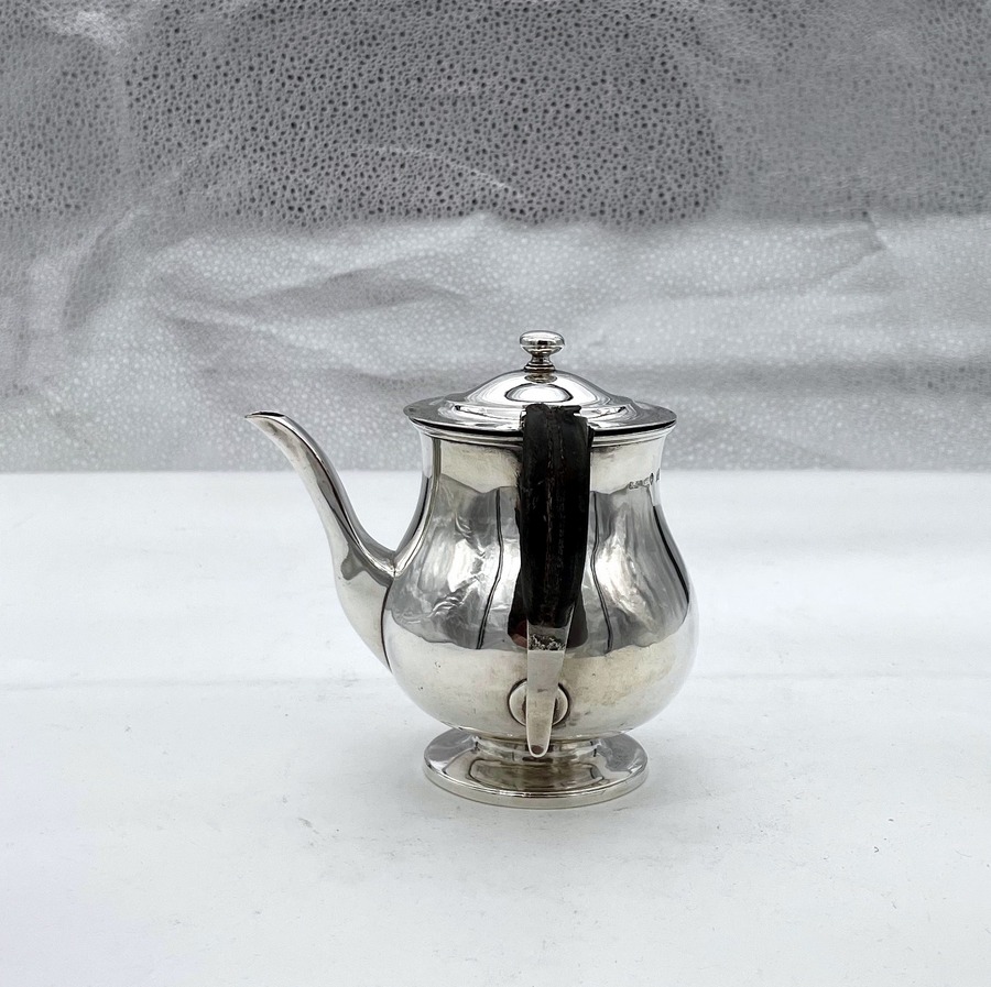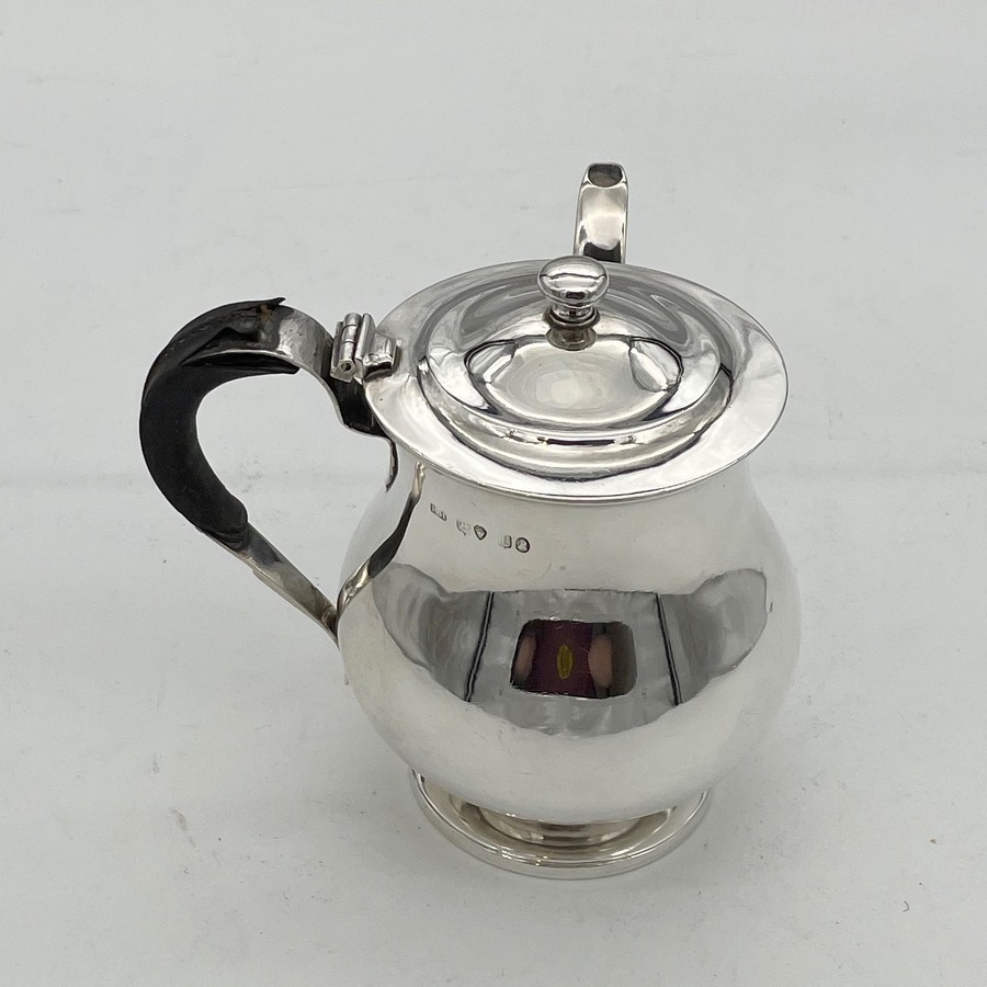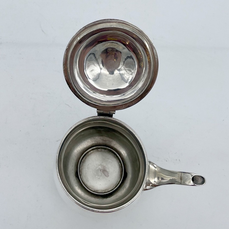 A sweet early 19th century baluster shaped silver gravy argyle designed with an elegant plain formed theme and stylish domed hinged lid. Â The scroll handle is leather bound for insulation and the detachable heat chamber has an iron insert.