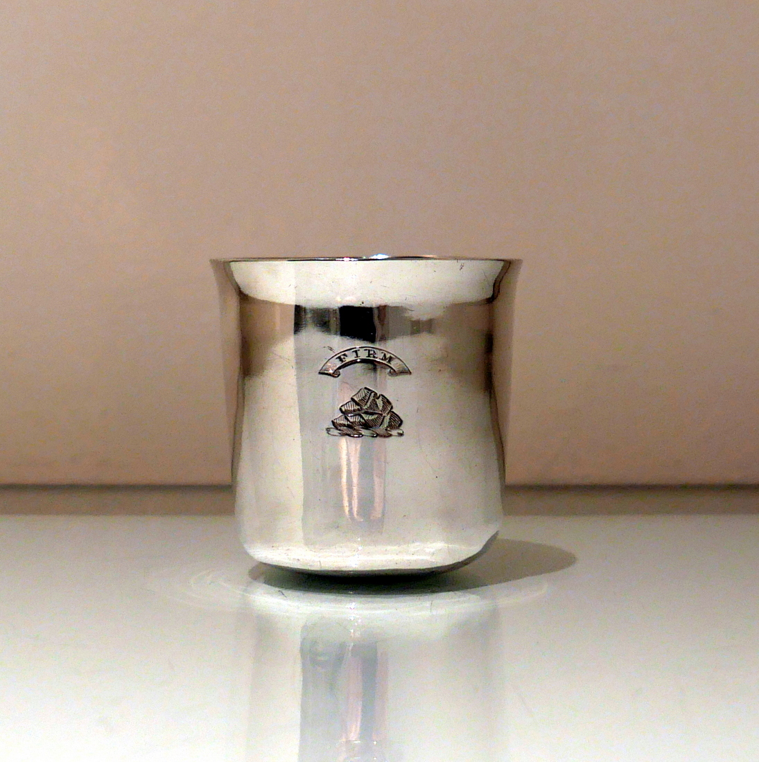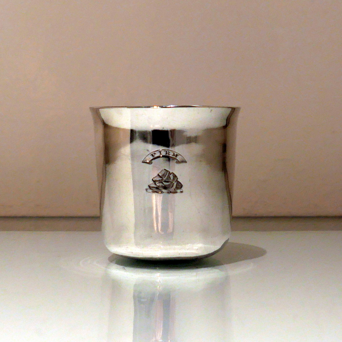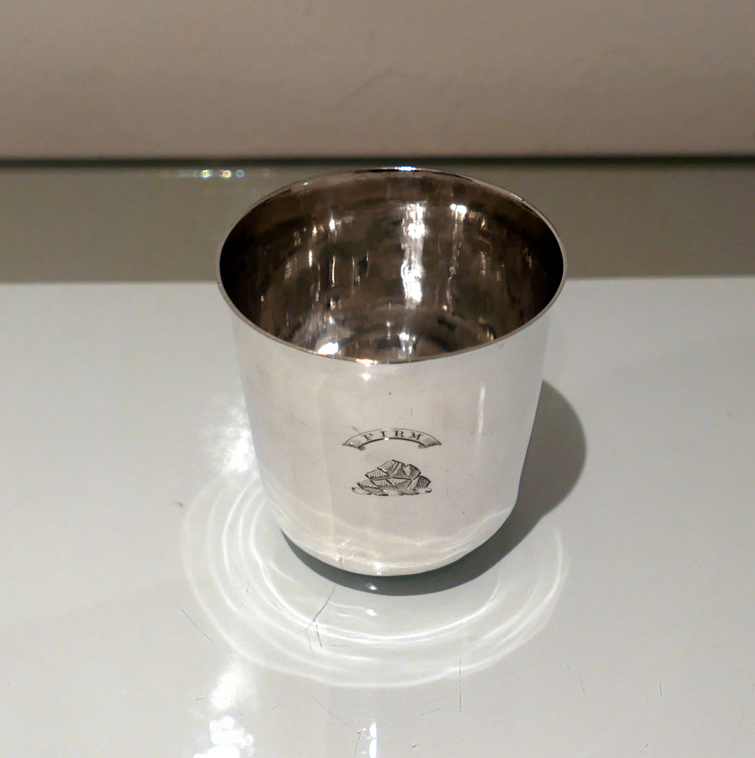 A rare and highly collectable 18th century Georgian Scottish beaker plain formed design and bearing a stylish contemporary crest for importance.