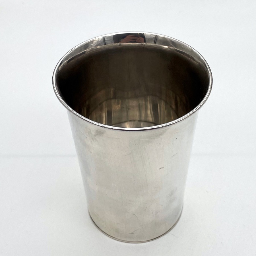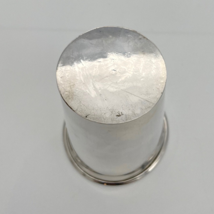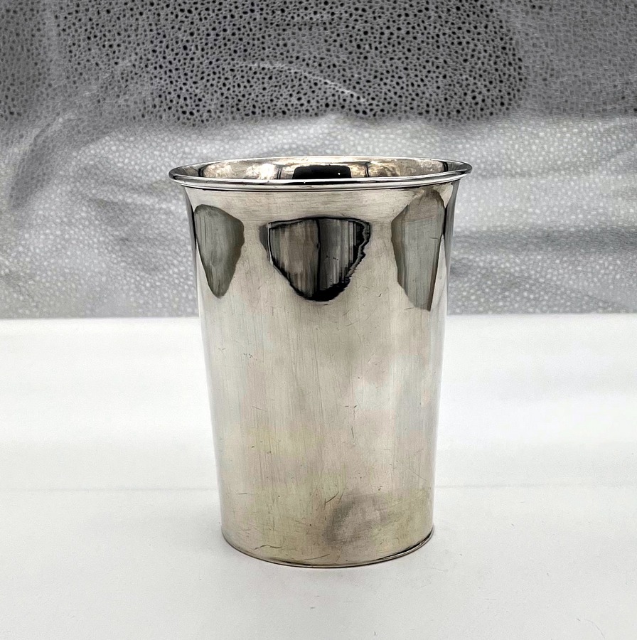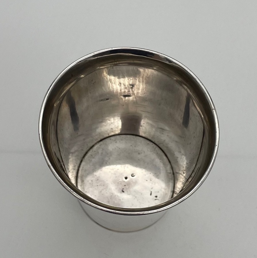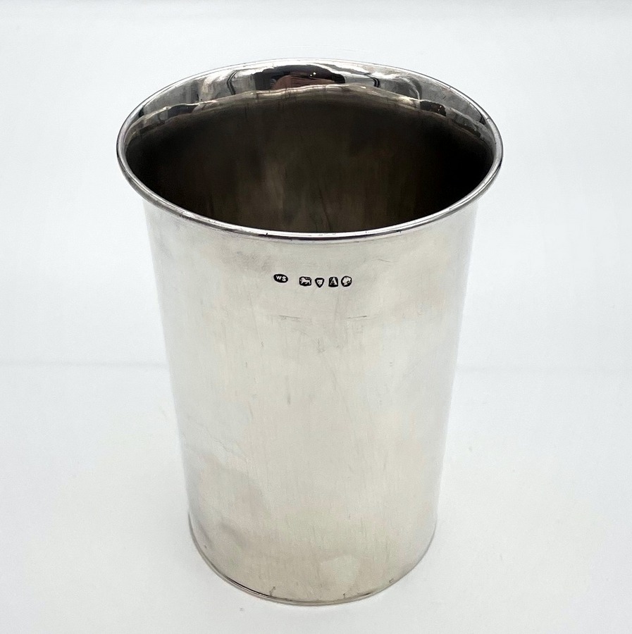 A stunning quality large flat bottomed Victorian sterling silver tapering beaker designed in an elegant plain formed manner.