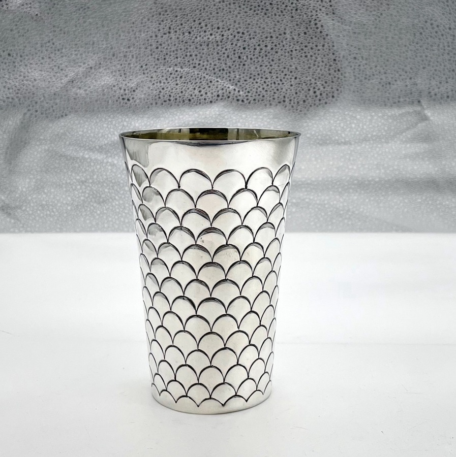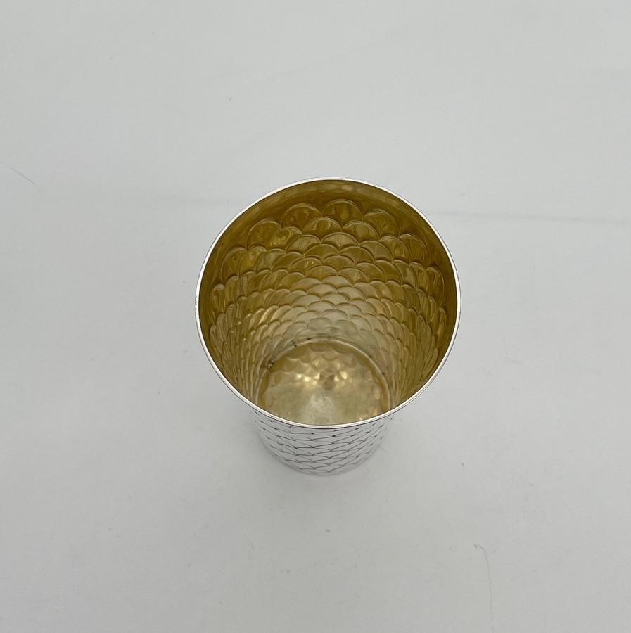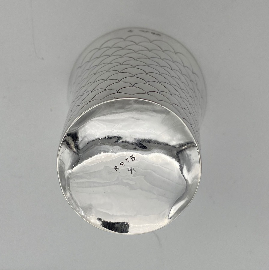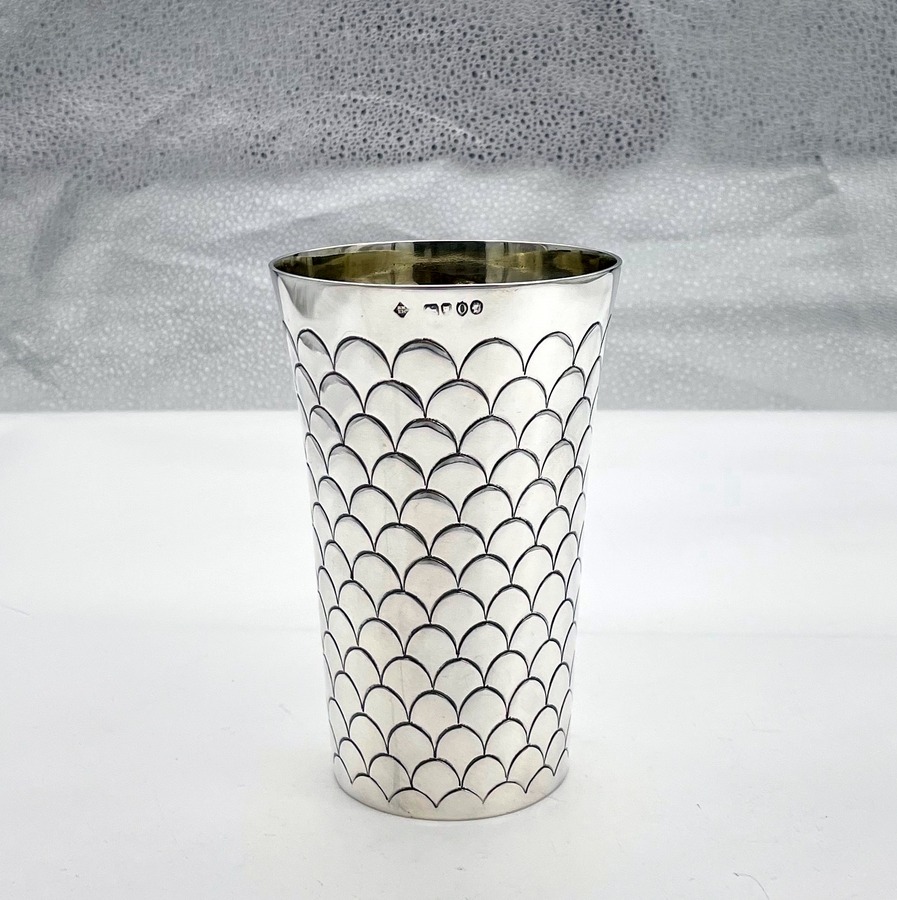 A very rare and incredibly stylish pair of Victorian silver tapering beakers decorated with sumptuous engraving and elegant gilt interiors.