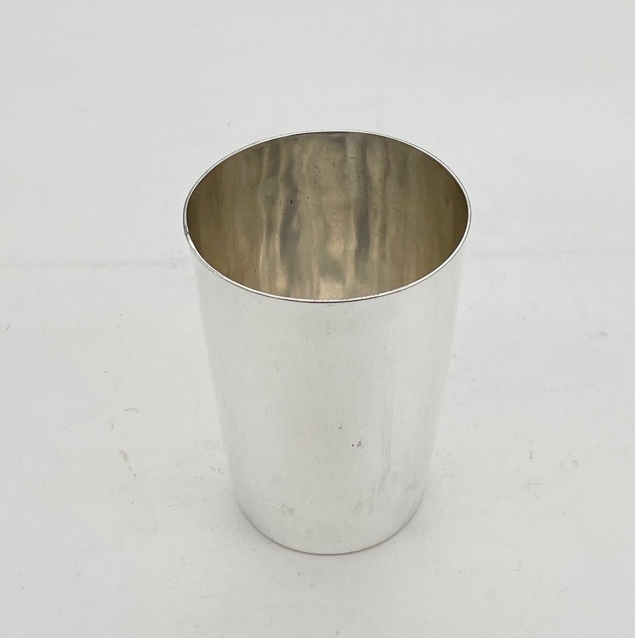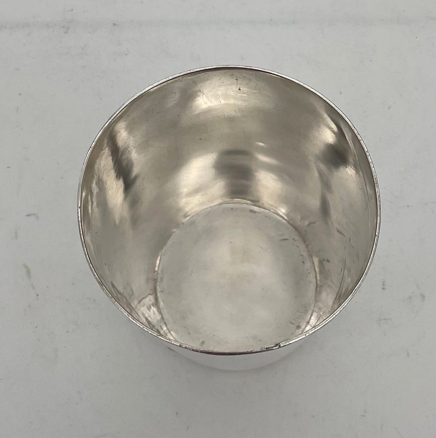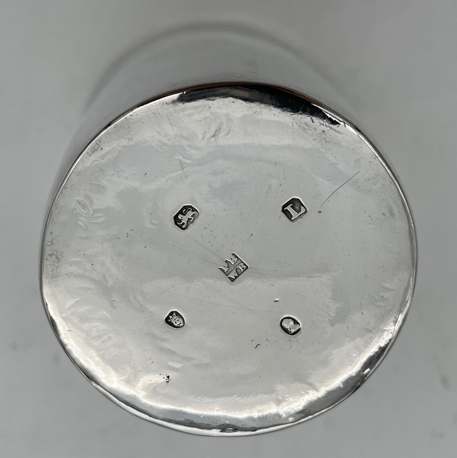 A beautiful Georgian cylindrical silver beaker designed with an elegant plain formed tapering body and a flat bottomed base.