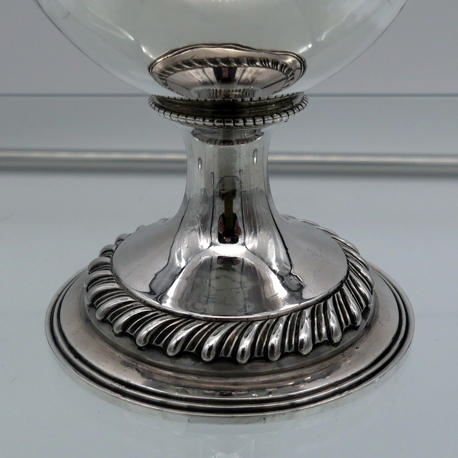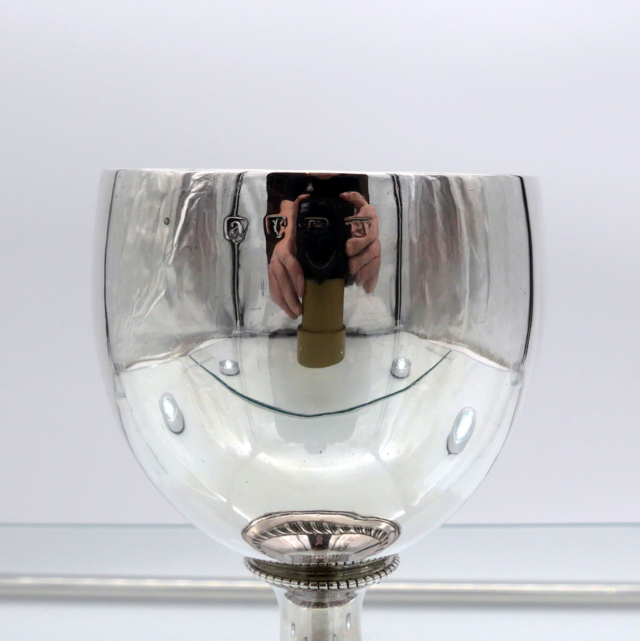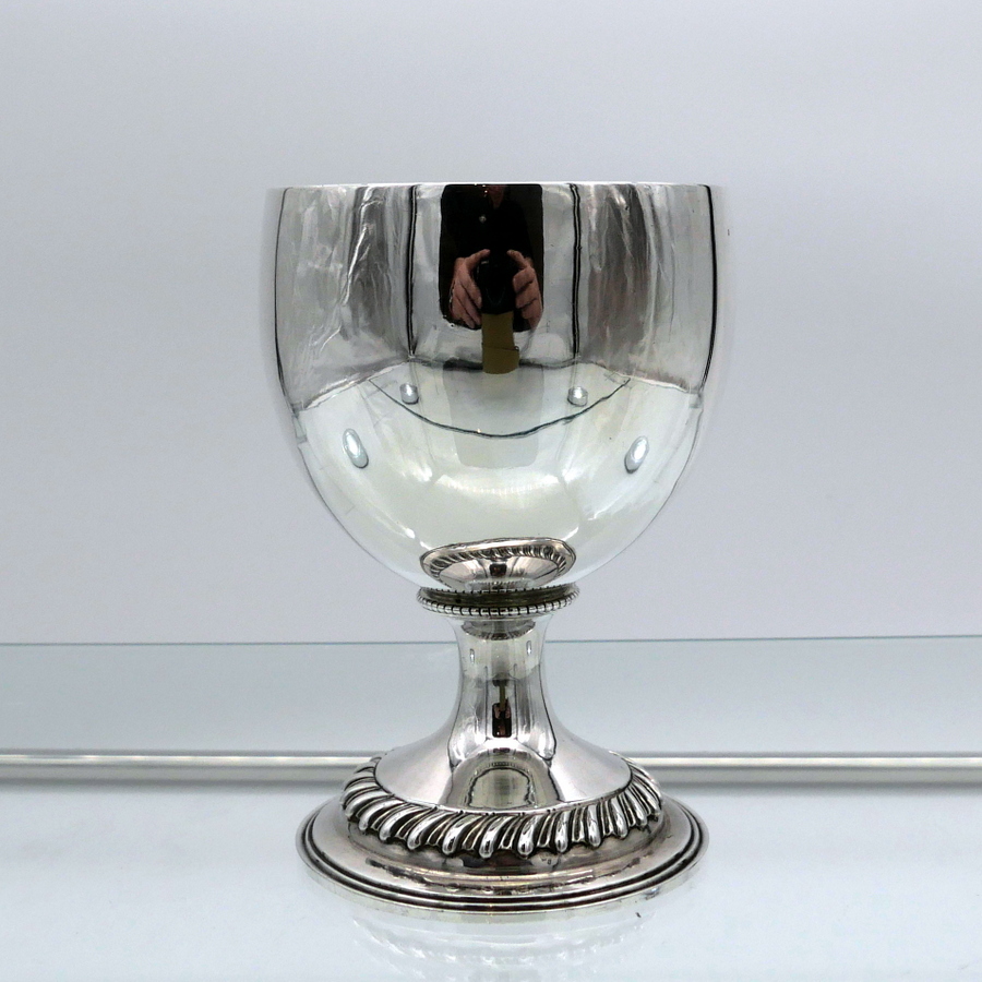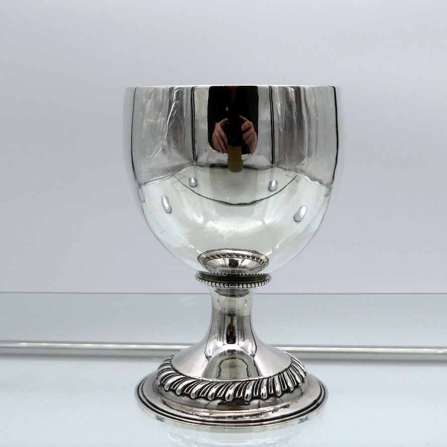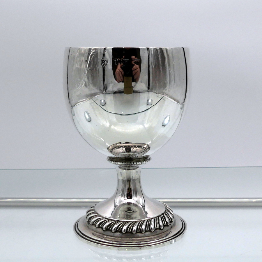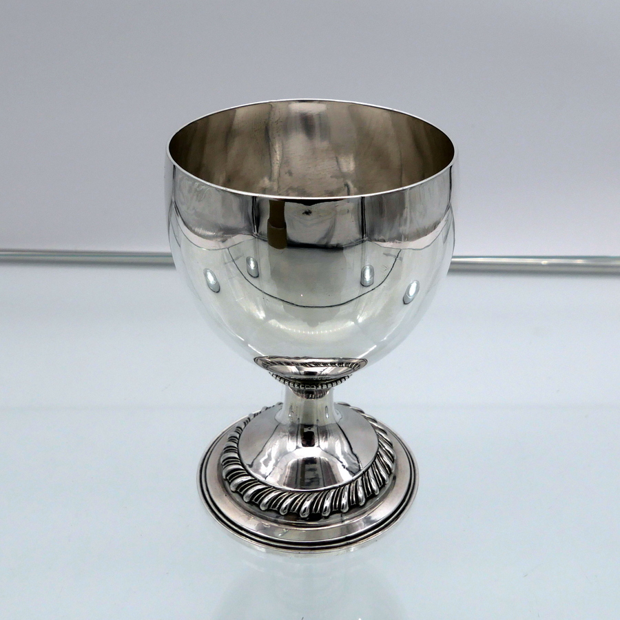 A beautiful Georgian silver wine goblet designed with an elegant plain formed bowl and a stylish raised pedestal gadroon foot.