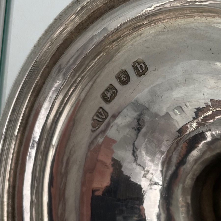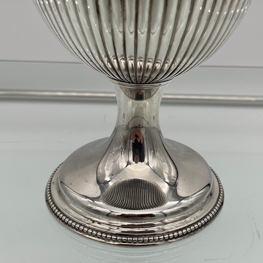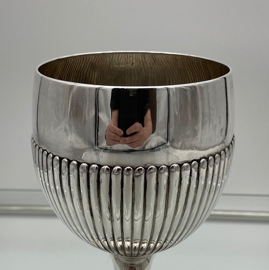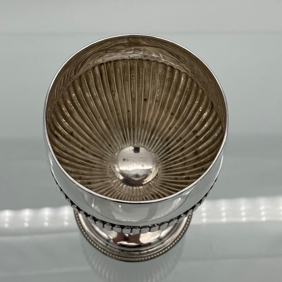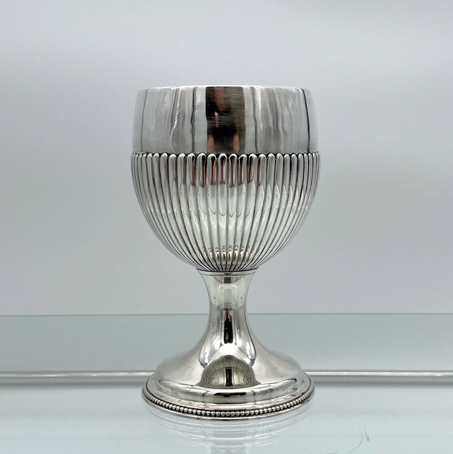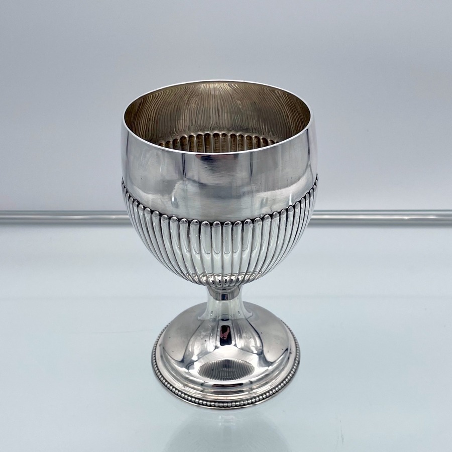 A good sized 18th century silver wine goblet designed with stylish fluting to the lower bowl and a bead wire to the circular foot for decorative highlights.