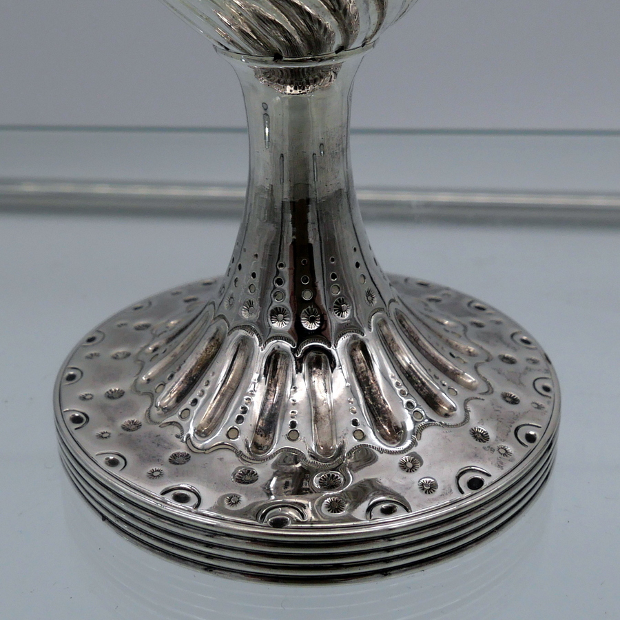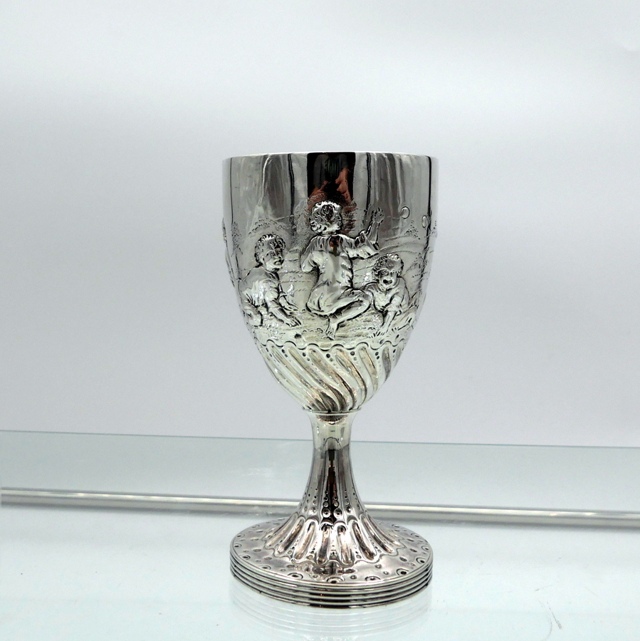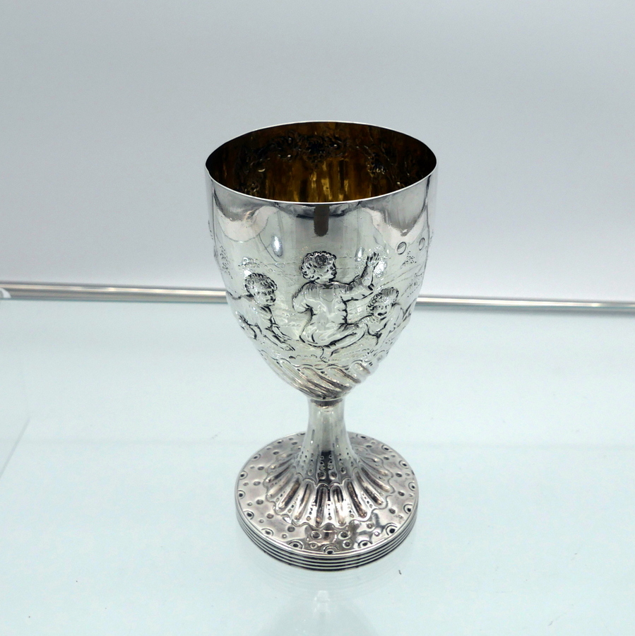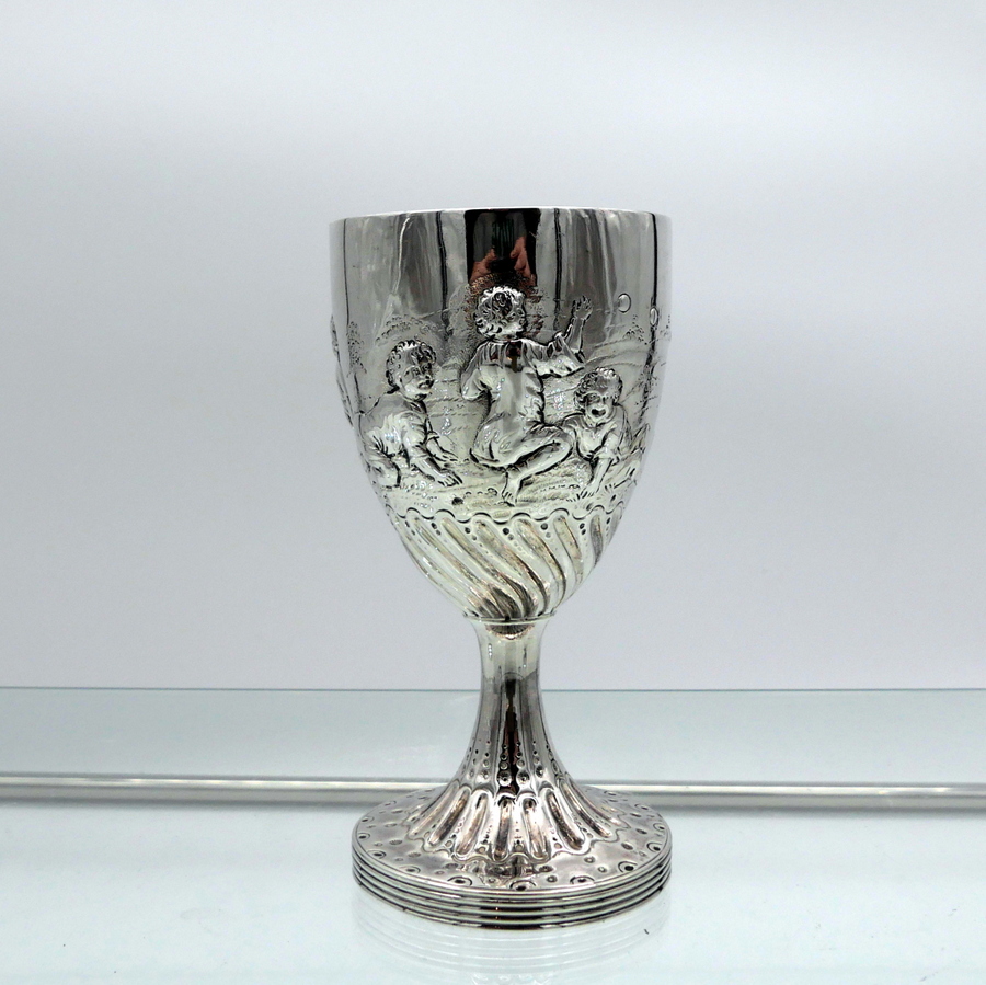 A beautiful Georgian silver wine goblet decorated with eye catching later chased (Victorian era) embossing stylish hand engraved entwined initials for importance.