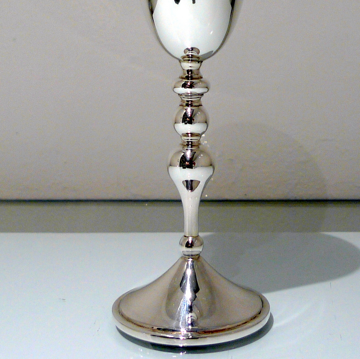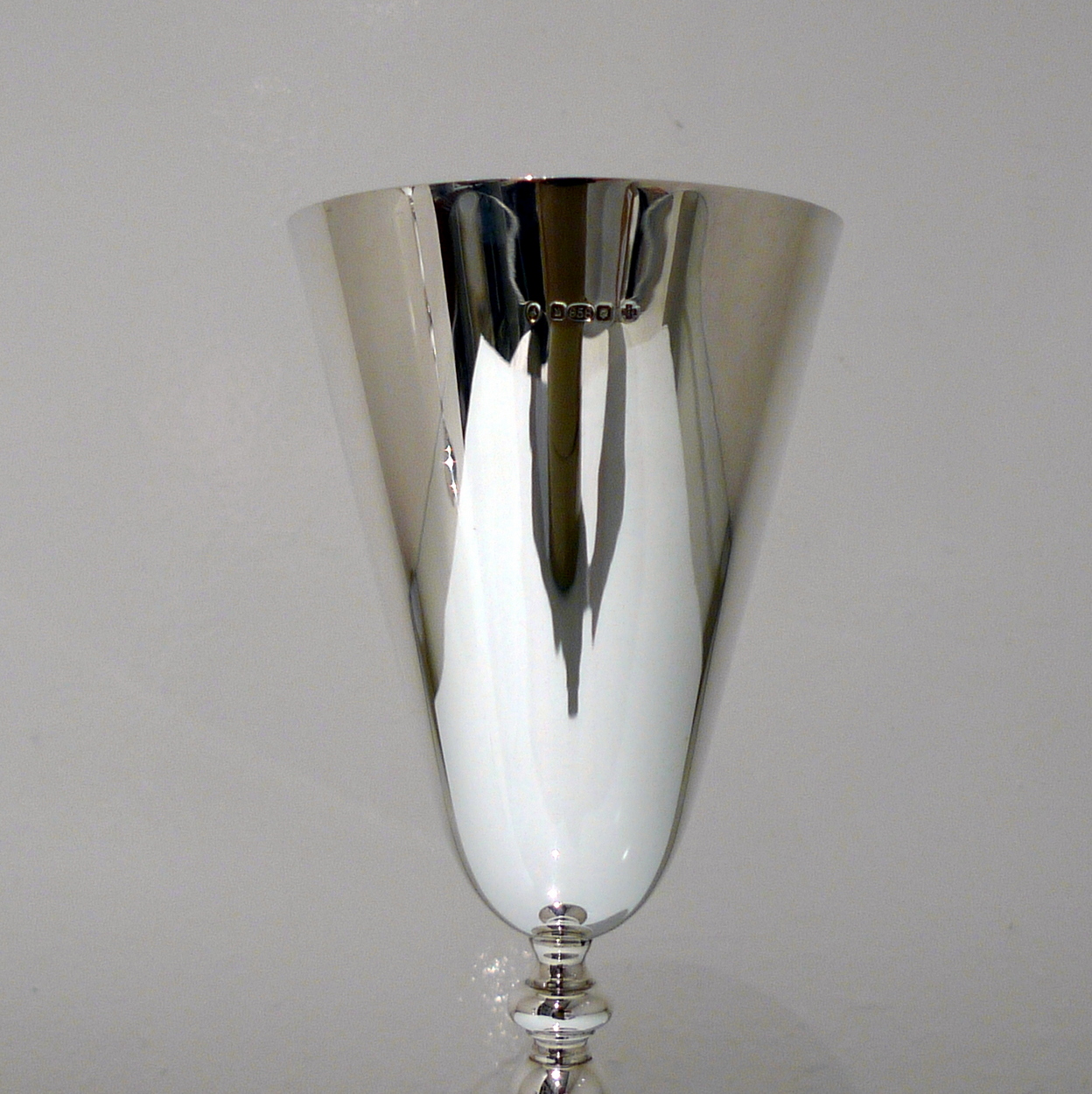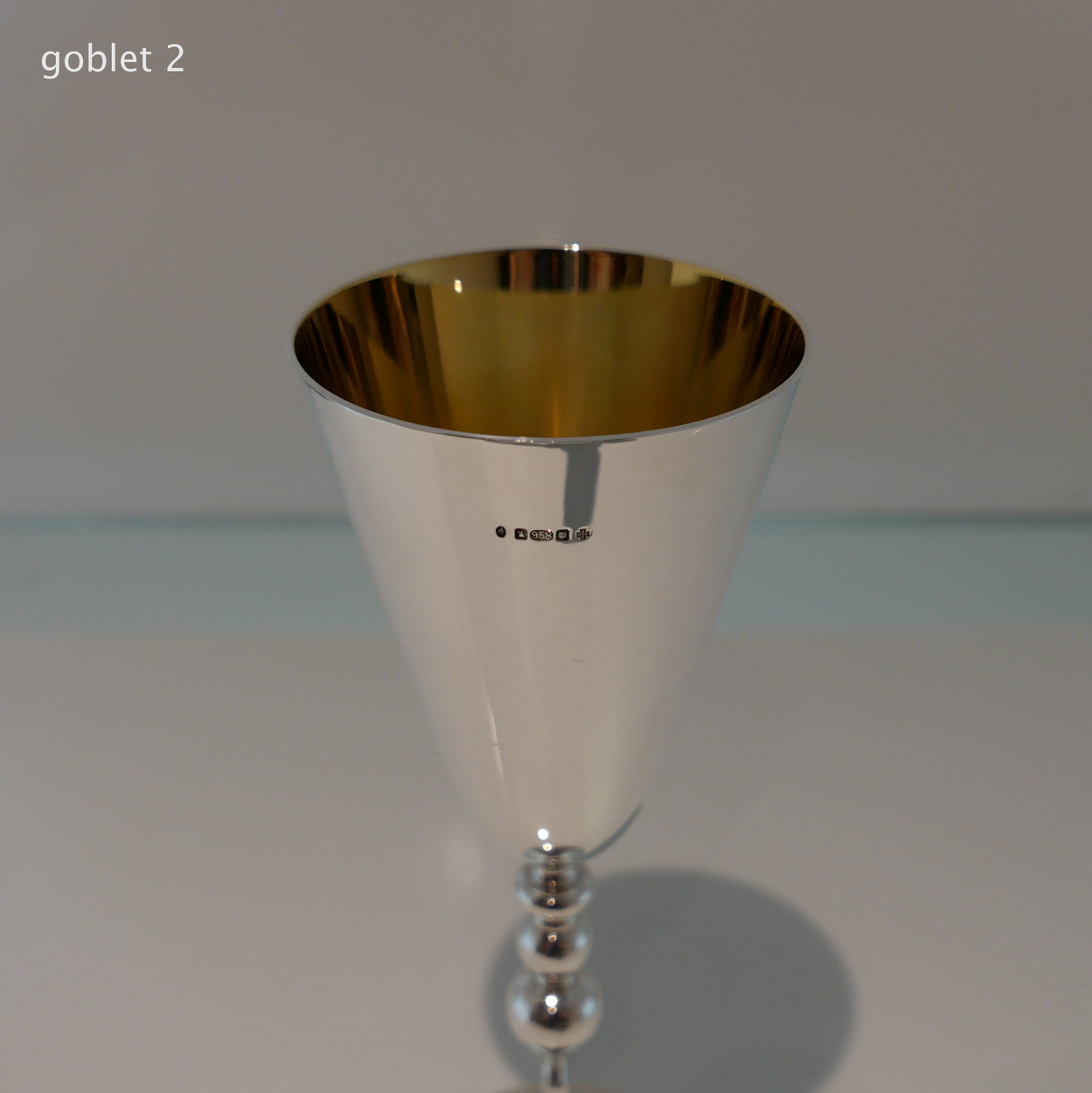 An incredibly stylish pair of highly collectable champagne flutes, superb quality in design and gauge, and decorated with gilt interior bowls for contrast and beautiful knopped stems for lowlights.