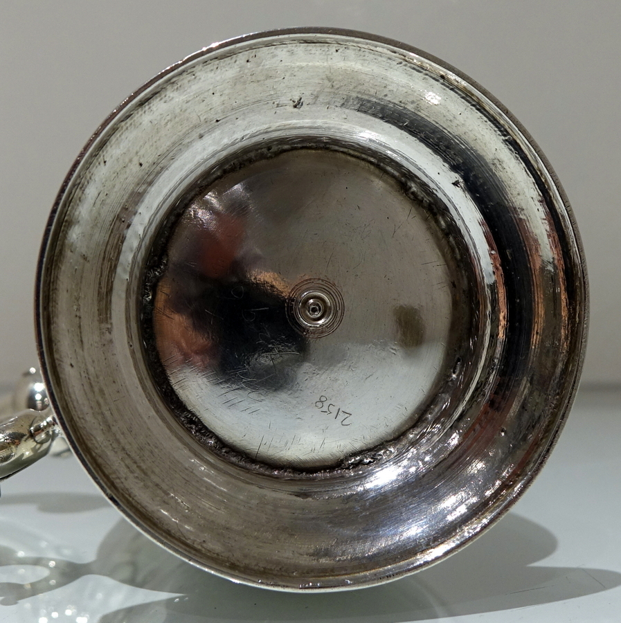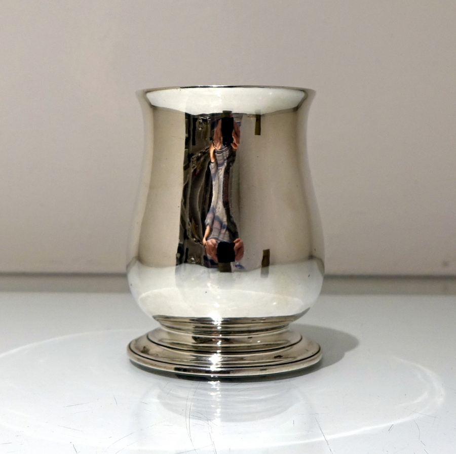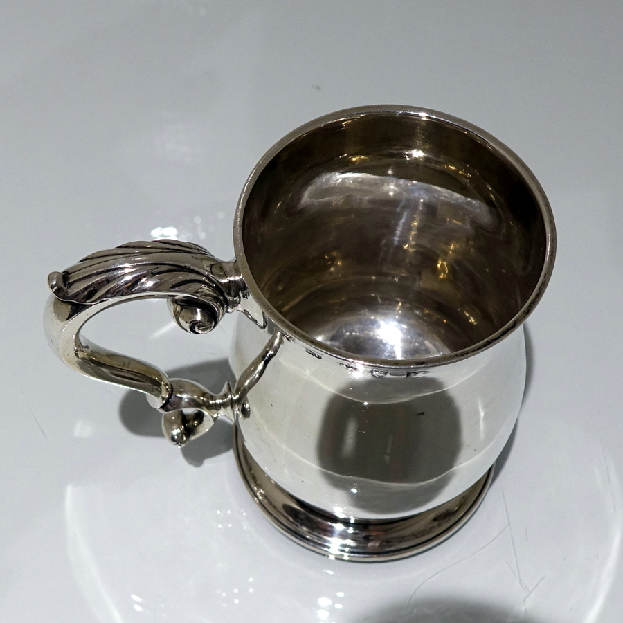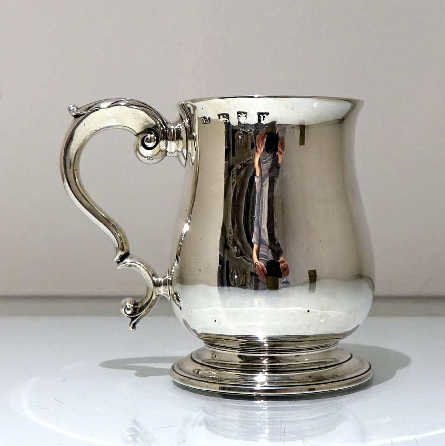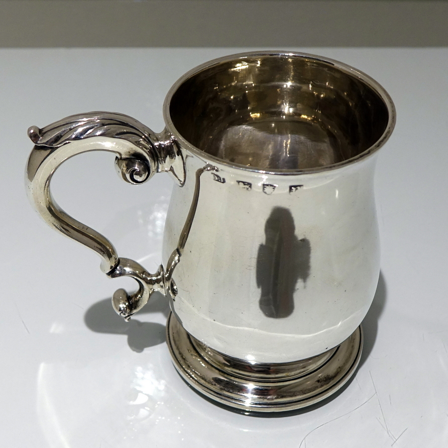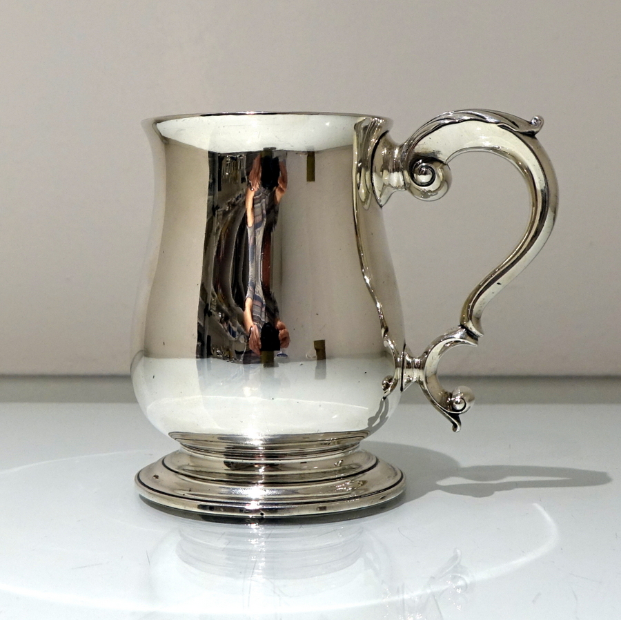 A handsome and exceptional quality Georgian baluster pint mug plain formed in design. Â The handle is double scroll in design and mounted with a stylish acanthus leaf thumbpiece.