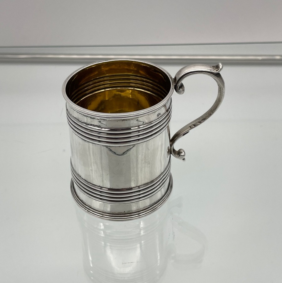 A delightful early 19th century silver christening mug decorated with elegant bands of fluting and a silver gilt interior for a decorative visual contrast.